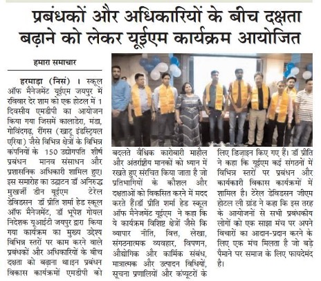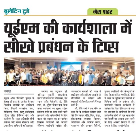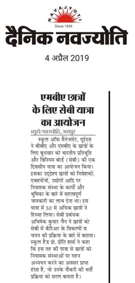 View DetailsIf one wants to be a leader in today’s economy, one must focus on tactful utilization of workforce along with having the pre-requisite technical as well as subject knowledge. This process involves a holistic use of science, craft and wisdom. University of Engineering and Management, Jaipur thrives towards incorporating these leadership skills in its students through its intensive Management programme. This, along with many national and international acclaims has made UEM one of the leading Universities not only in Jaipur, but across India.