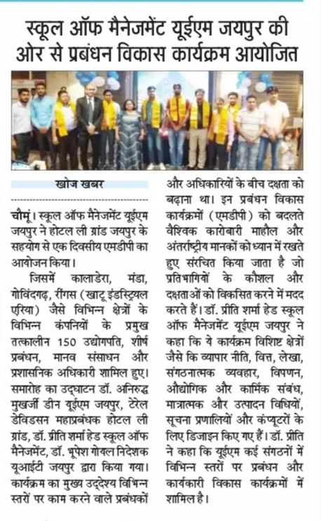 - Prof. Dr. N.D. Mathur (Dean, Humanities and Social Sciences, JECRC University).
