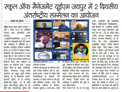 ICCICME 2022 conducted by the University of Engineering & Management (UEM), JAIPUR, School of Management – DAY 2, 2nd April, 2022.