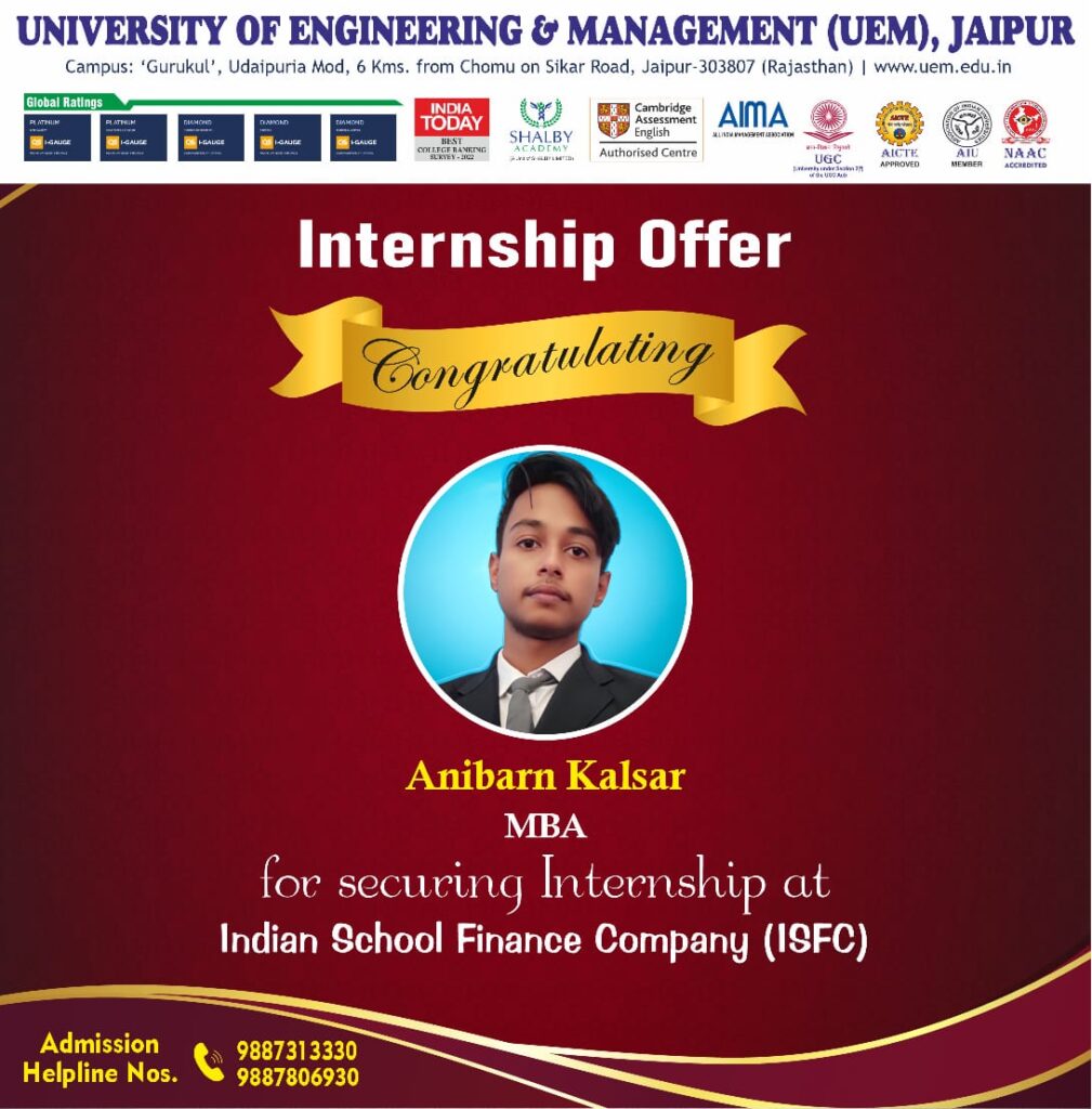 In 2023, Govt. of India, Ministry of Education has ranked UEM JAIPUR in 1st position in North-Western India through Institution's Innovation Council.