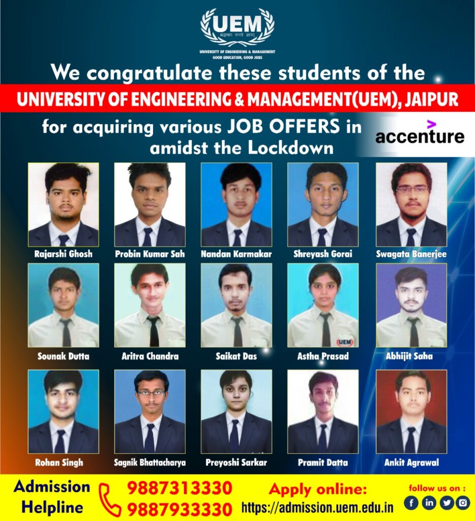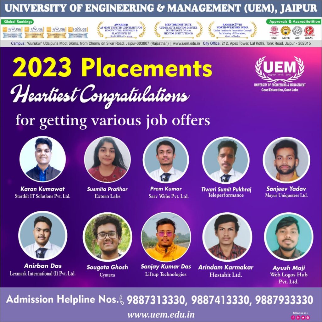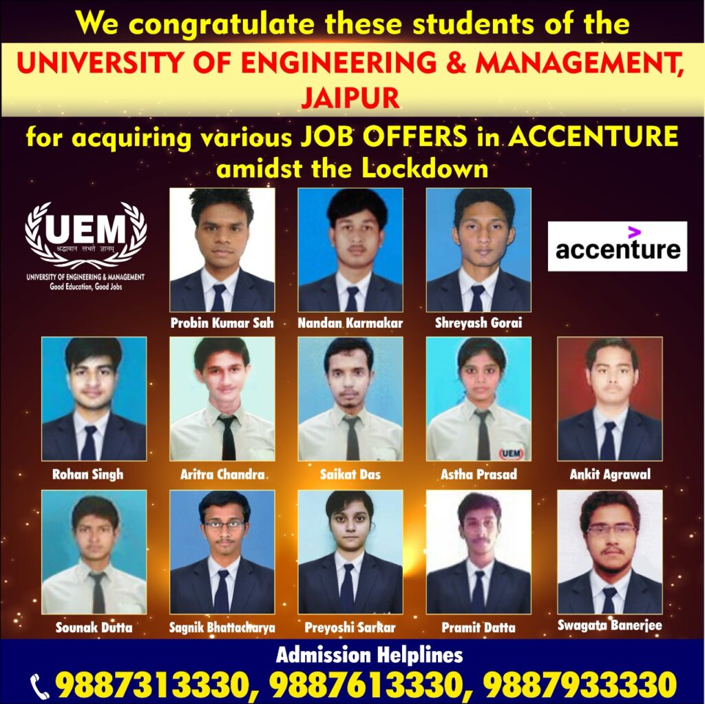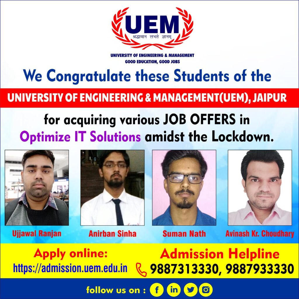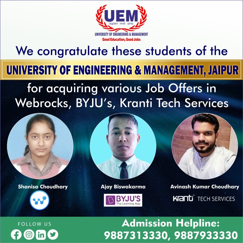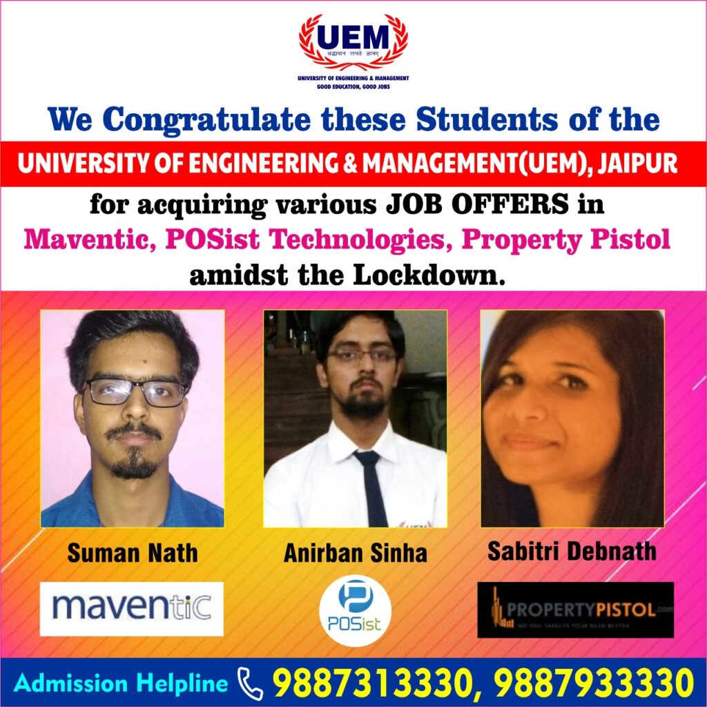 - The students of the University of Engineering & Management (UEM), Jaipur have acquired wonderful job offers.