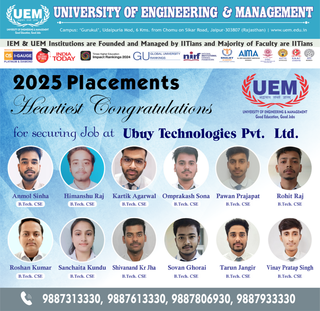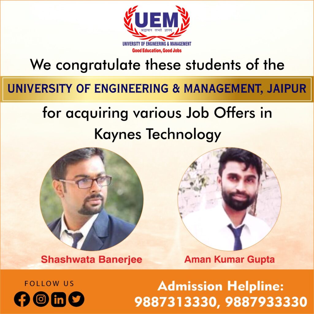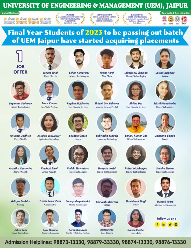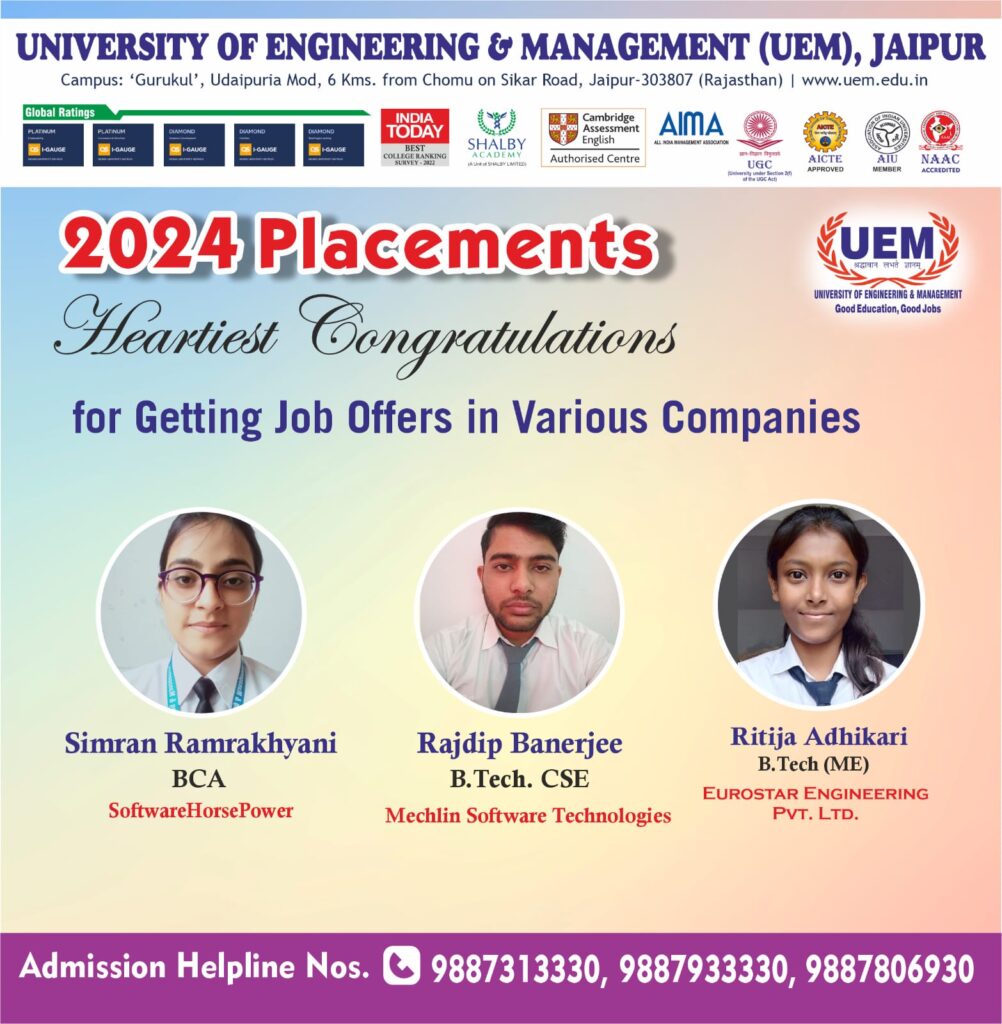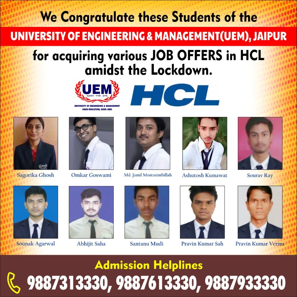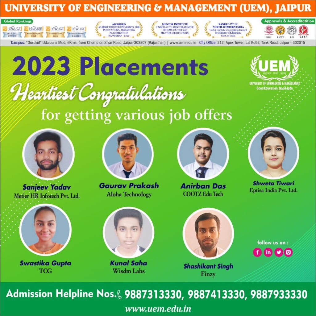 - The students of the University of Engineering & Management (UEM), Jaipur have acquired wonderful job offers.