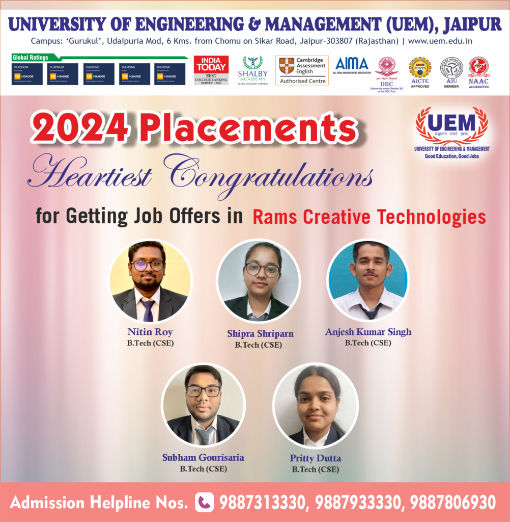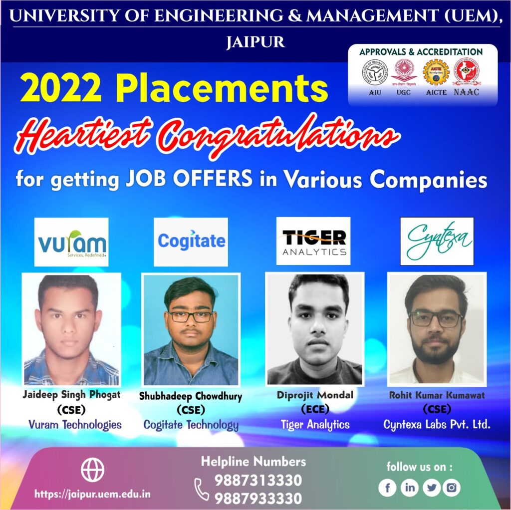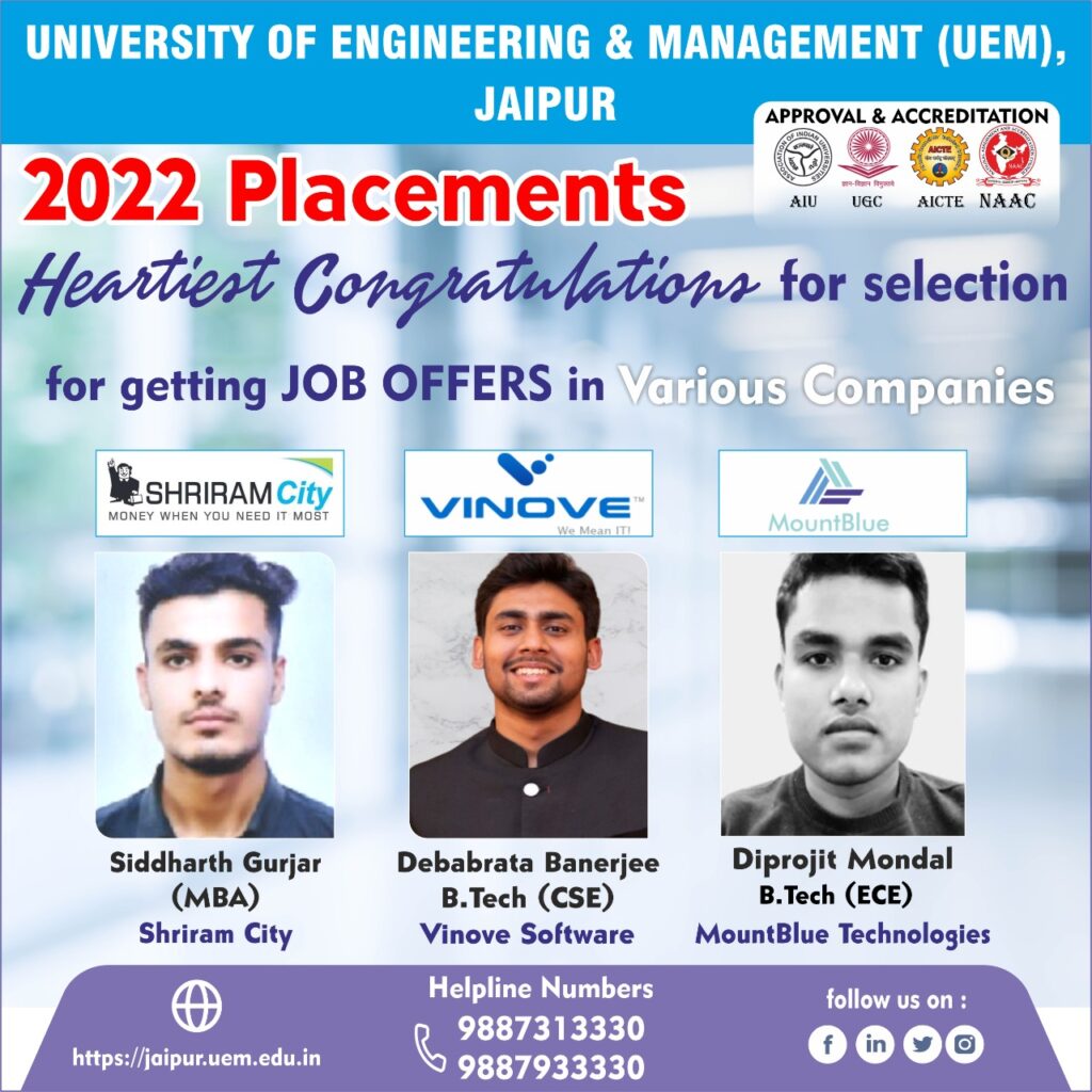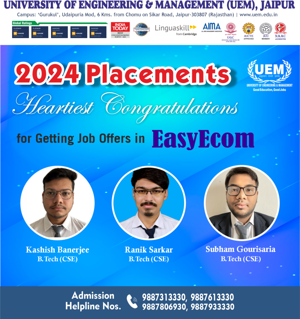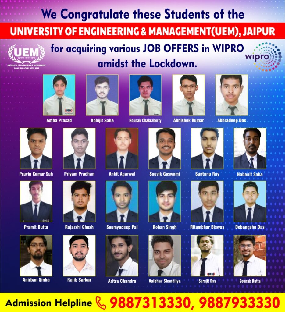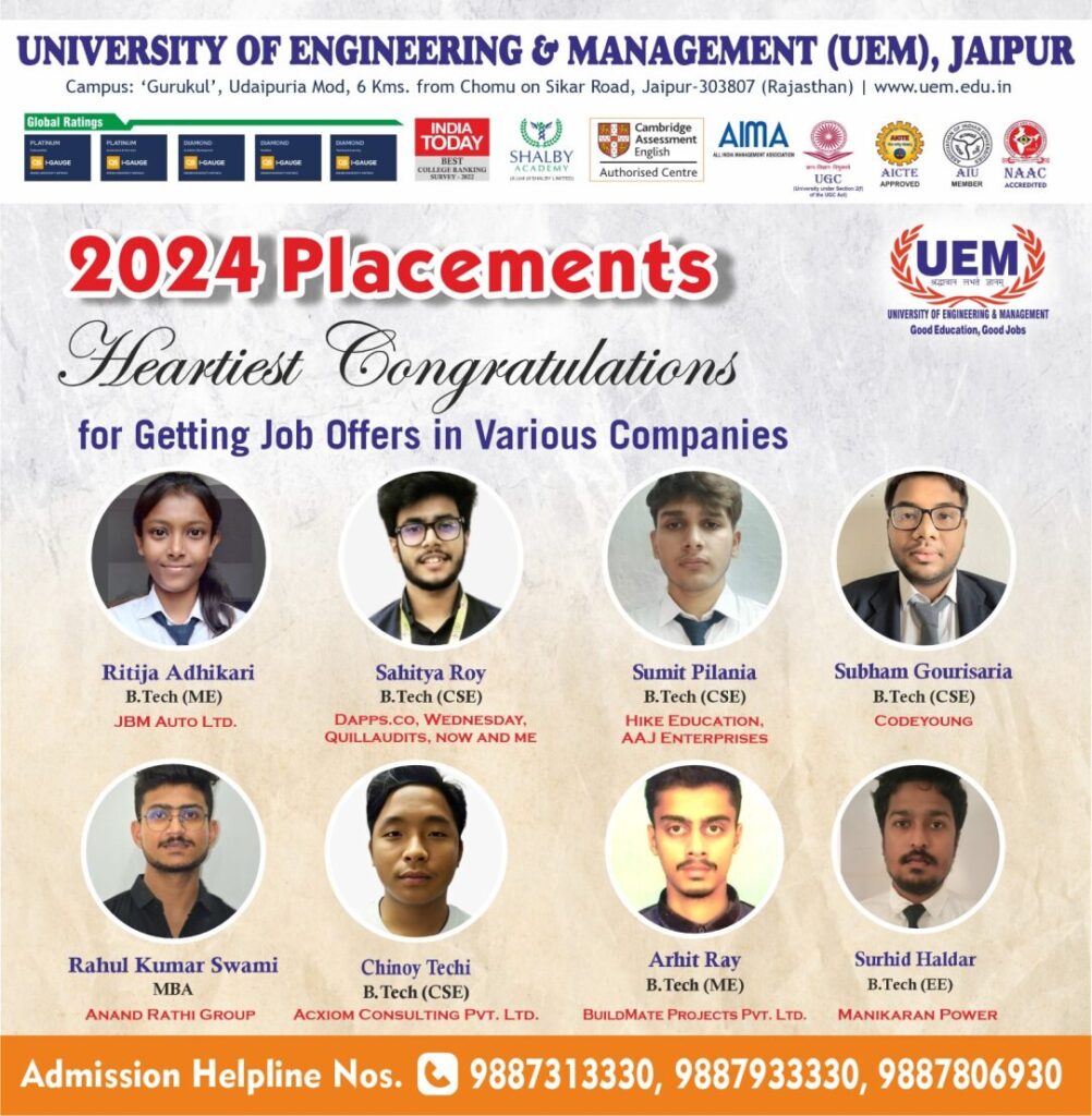 - The students of the University of Engineering & Management (UEM), Jaipur have acquired wonderful job offers.