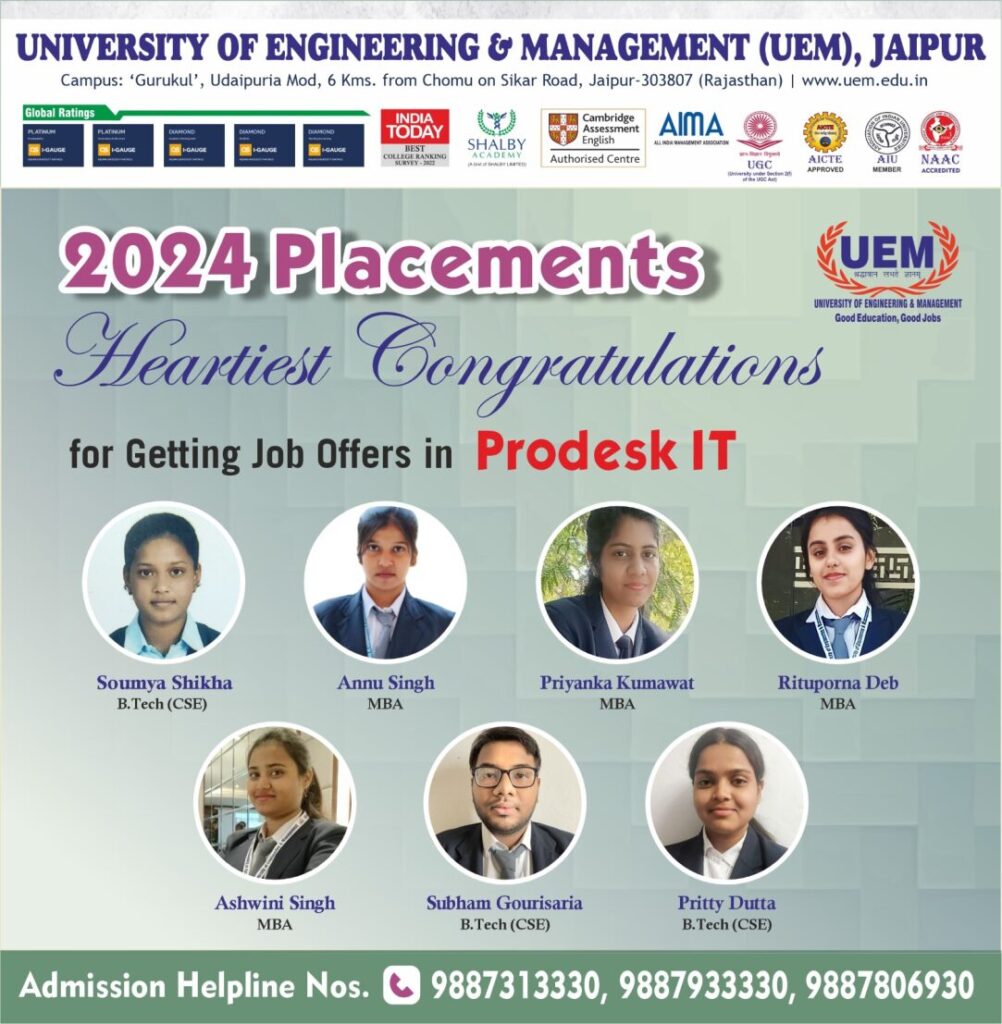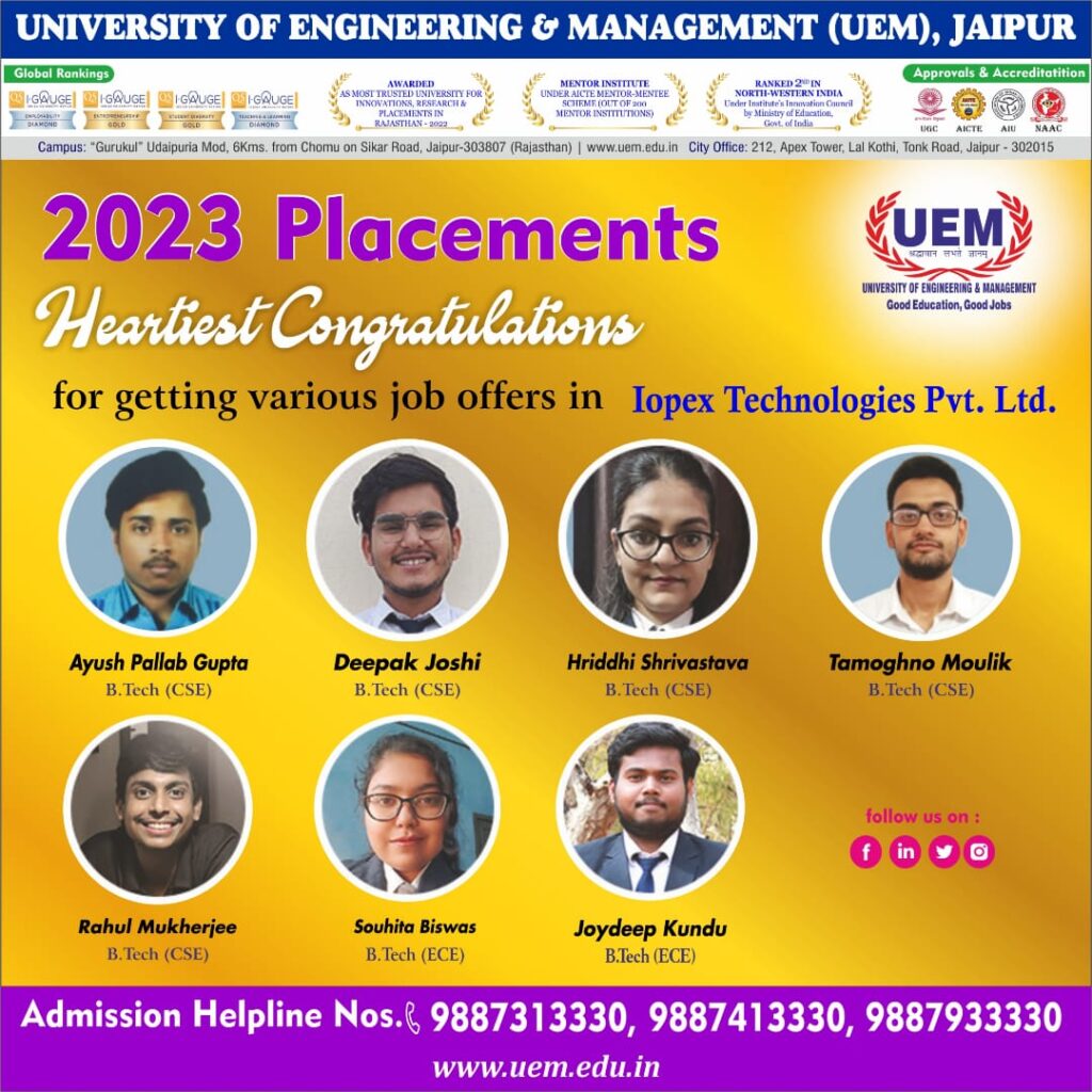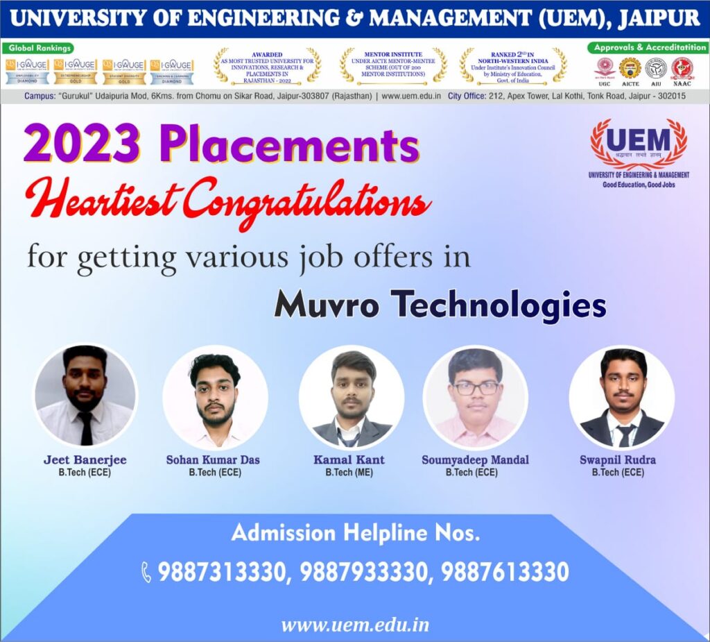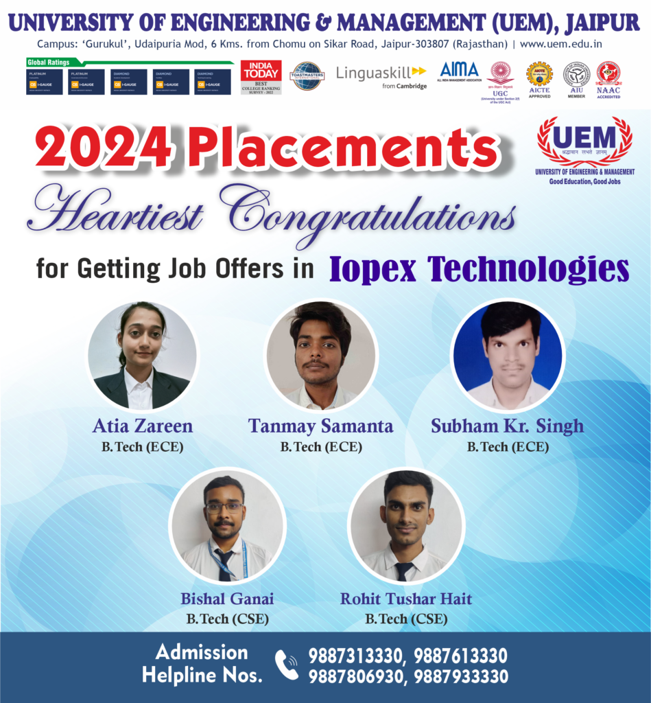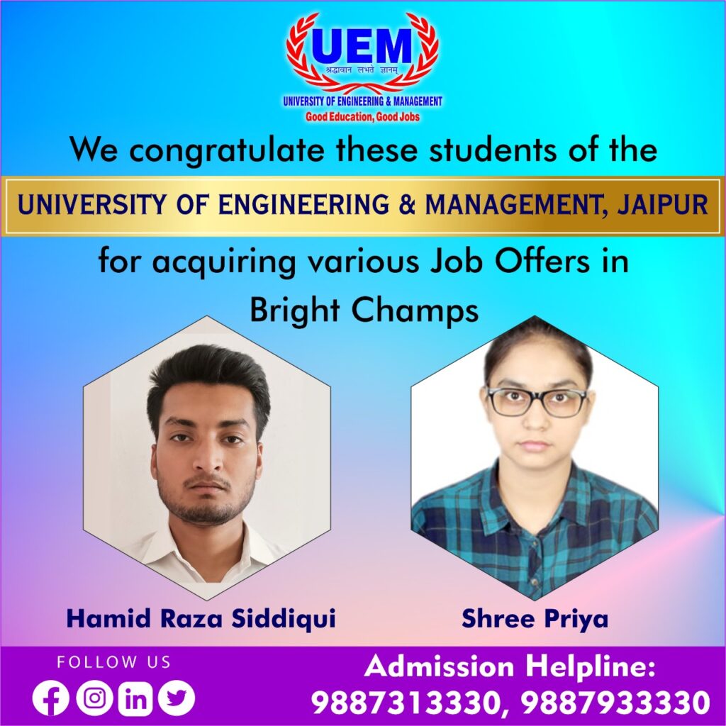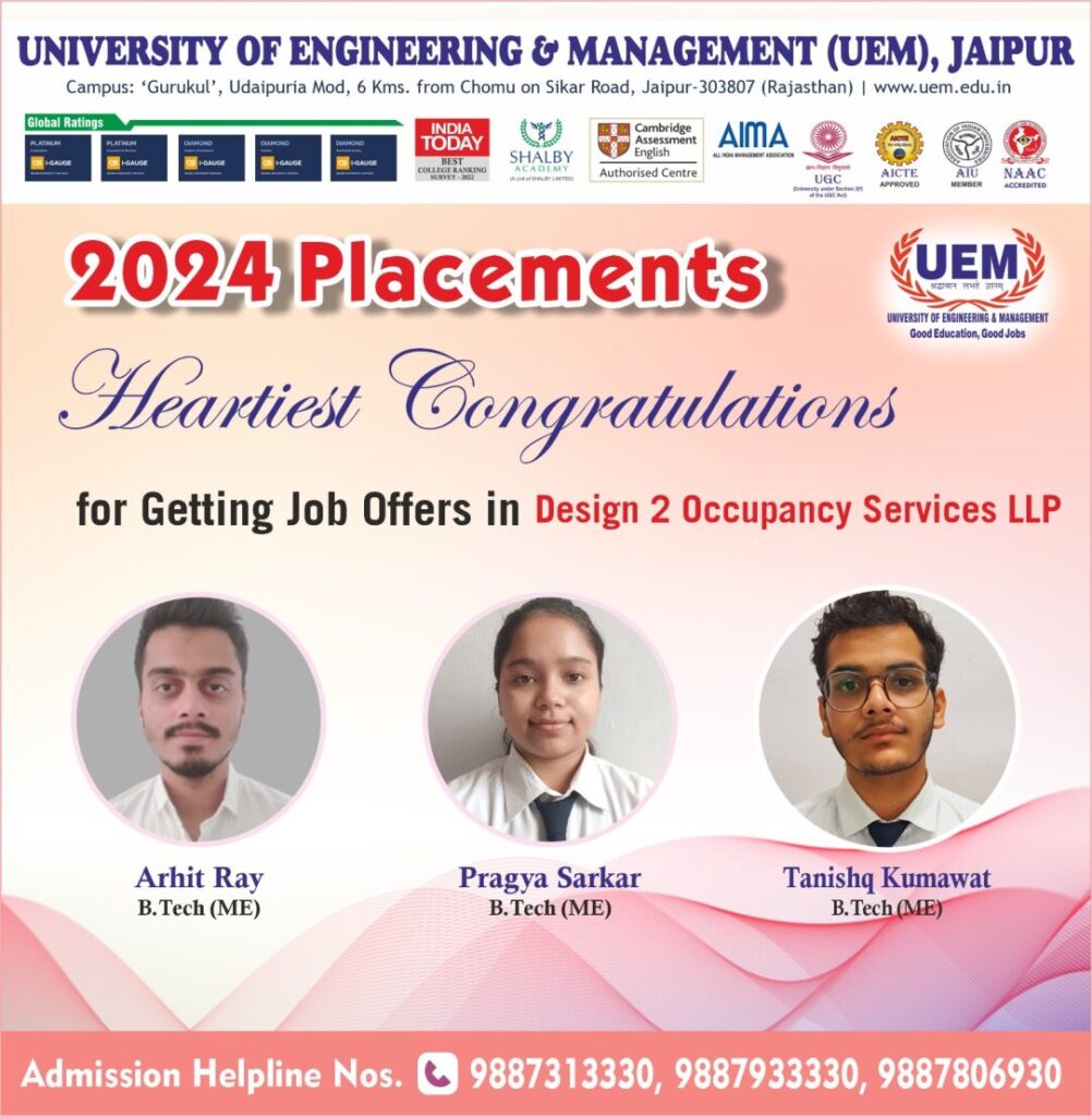 - The students of the University of Engineering & Management (UEM), Jaipur have acquired wonderful job offers.