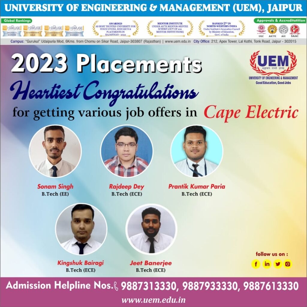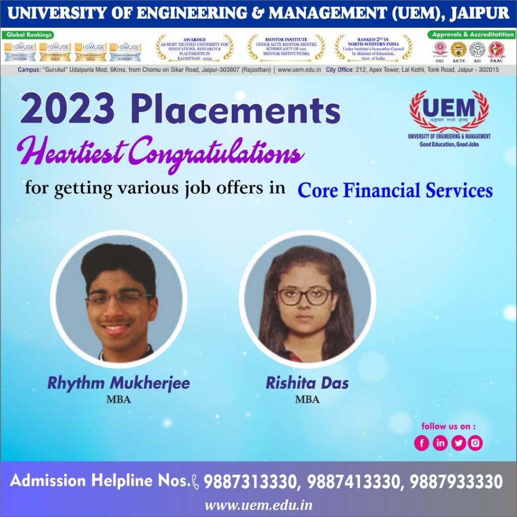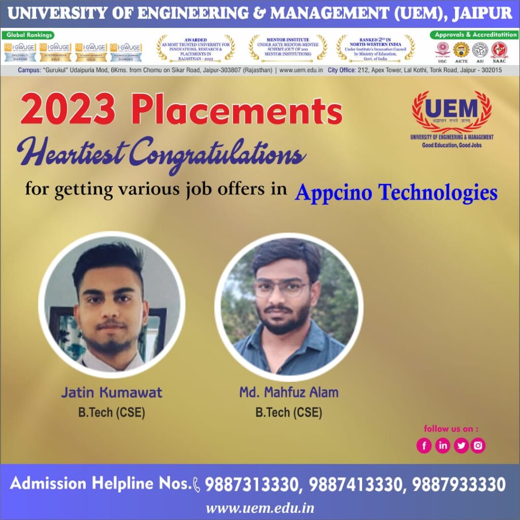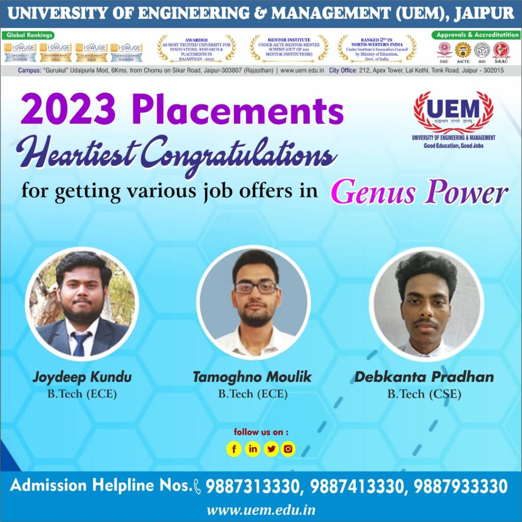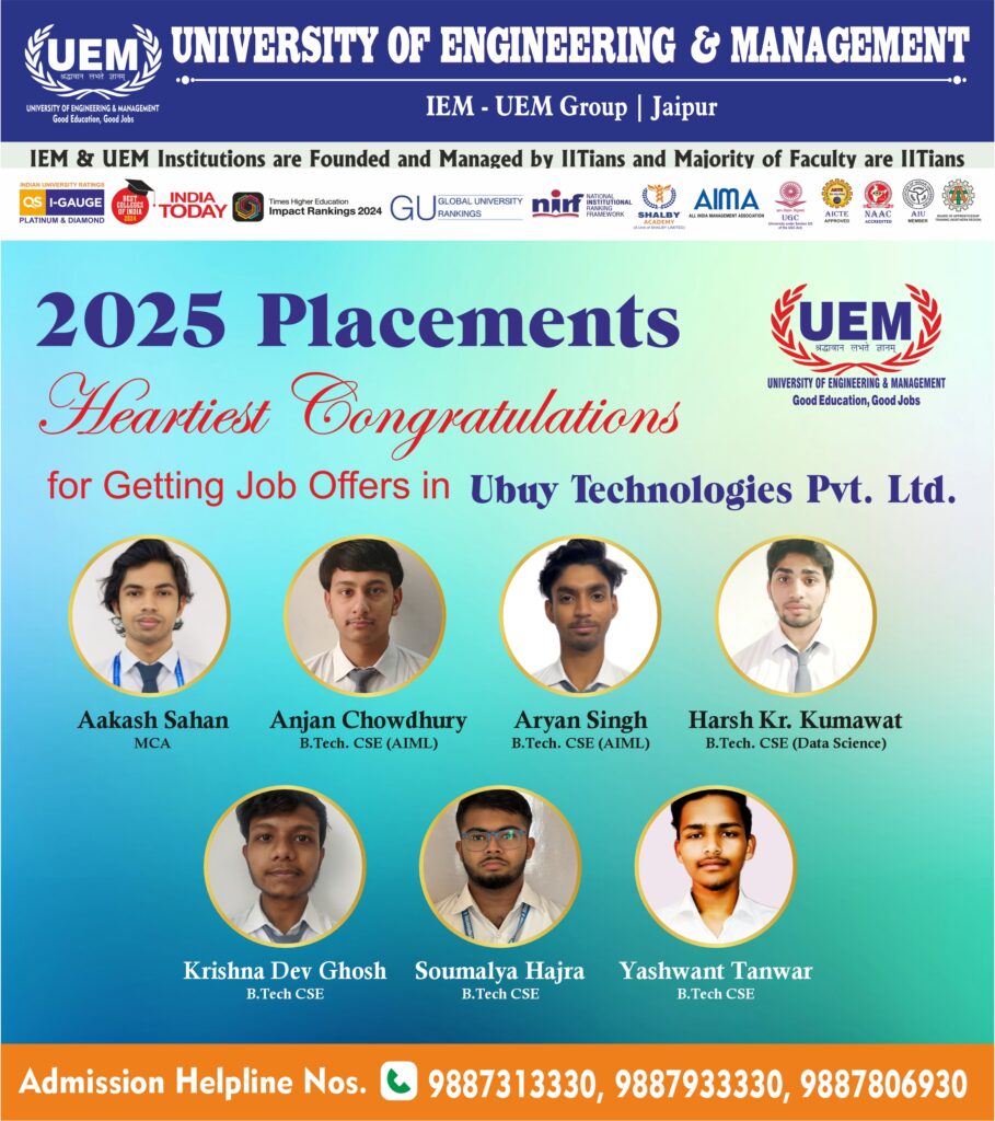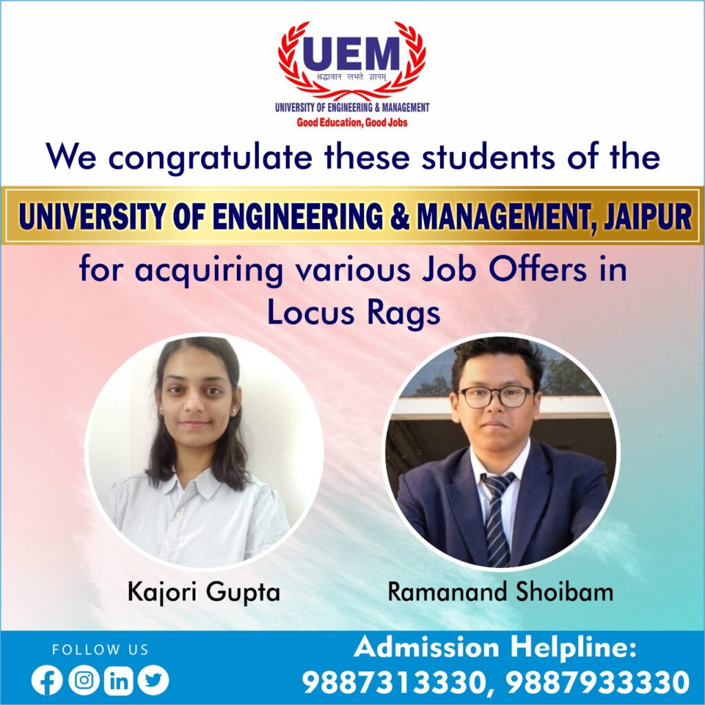 - The students of the University of Engineering & Management (UEM), Jaipur have acquired wonderful job offers.