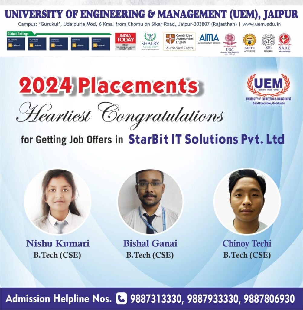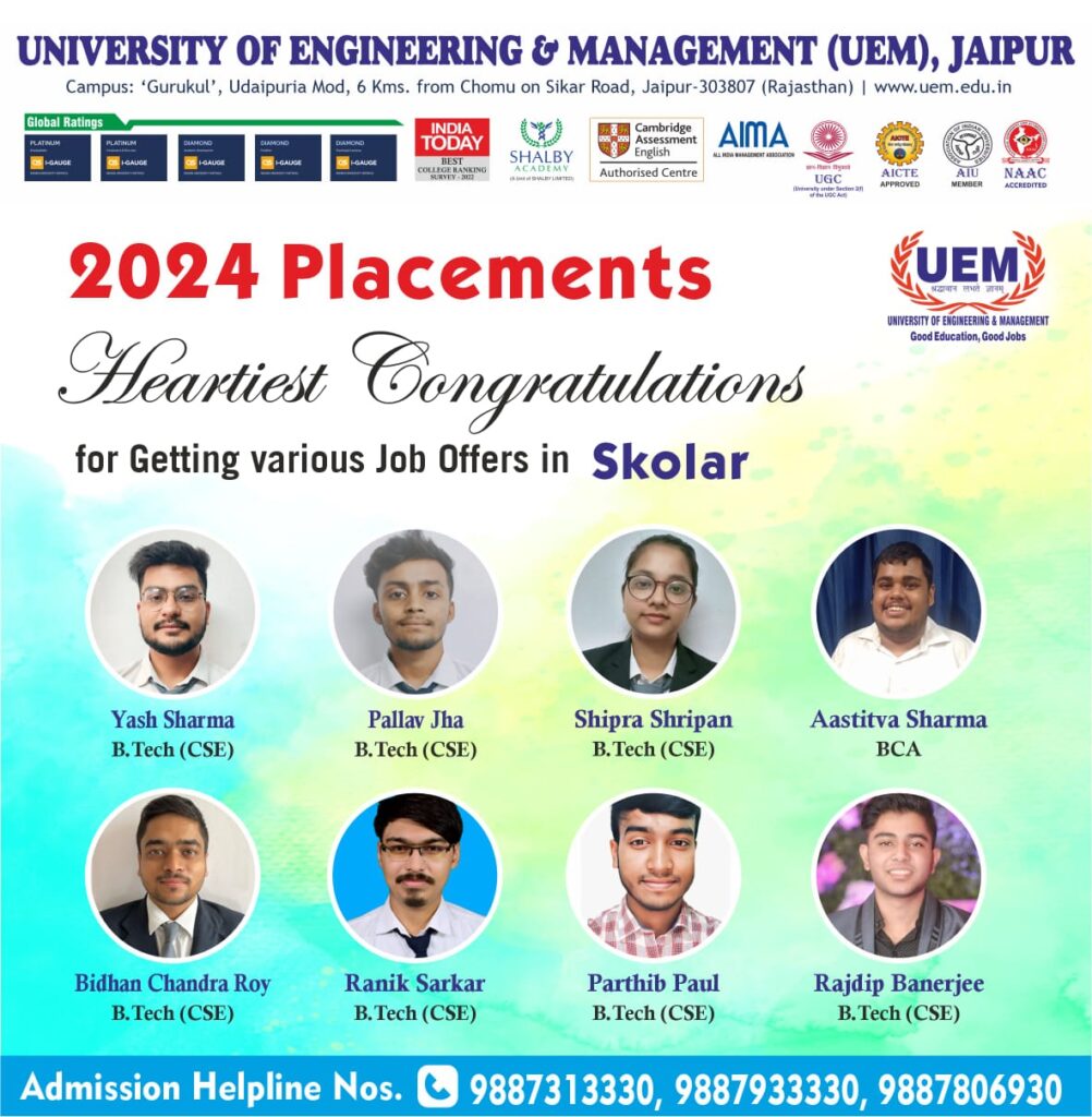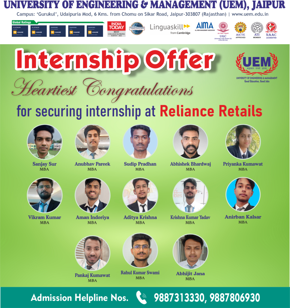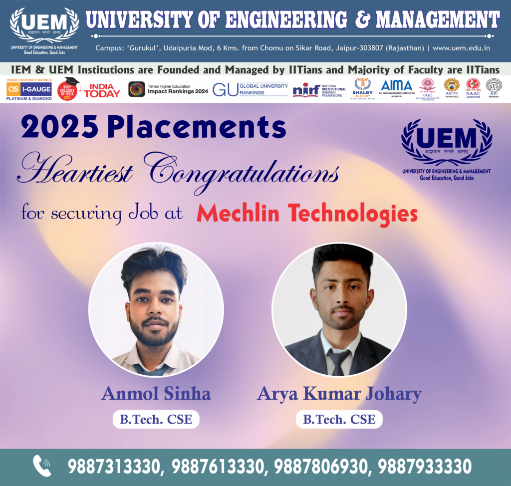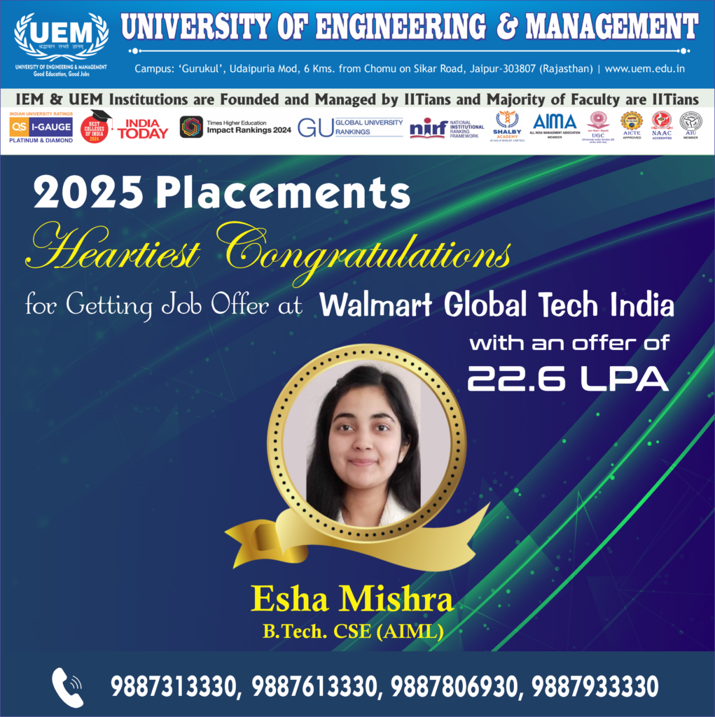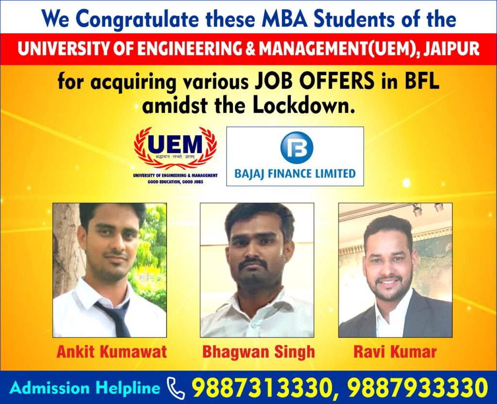 - The students of the University of Engineering & Management (UEM), Jaipur have acquired wonderful job offers.