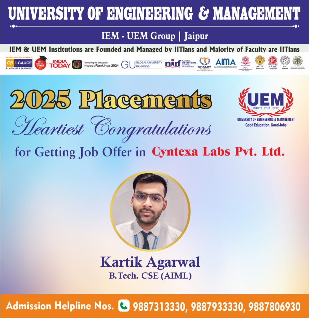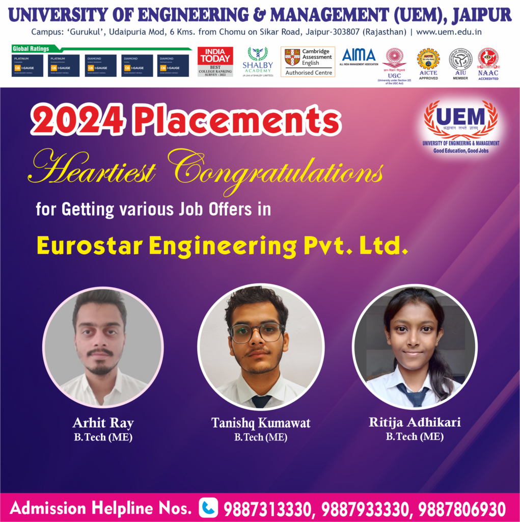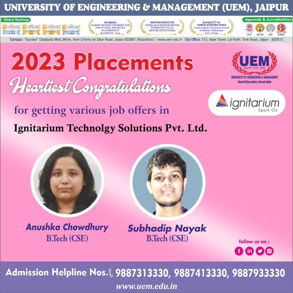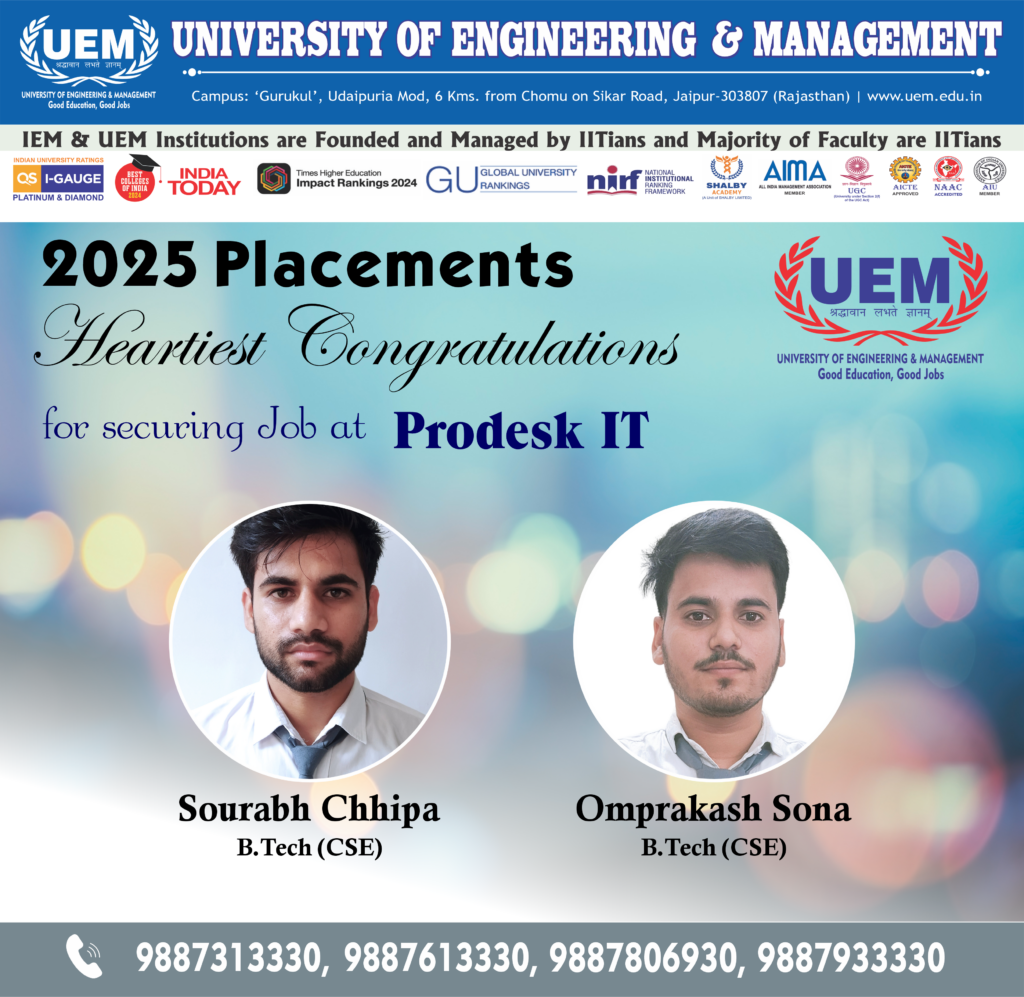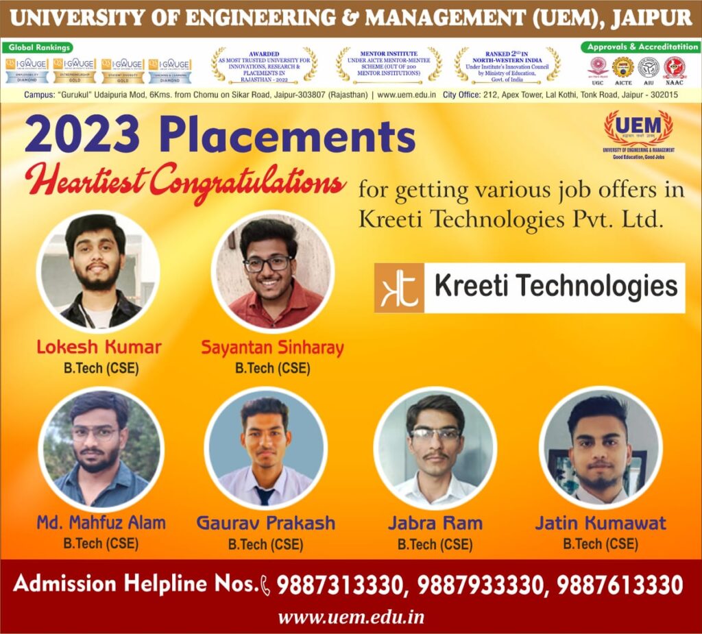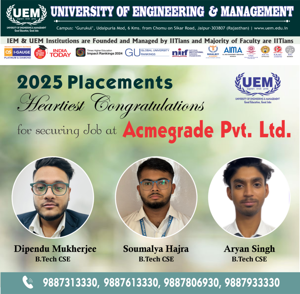 - The students of the University of Engineering & Management (UEM), Jaipur have acquired wonderful job offers.