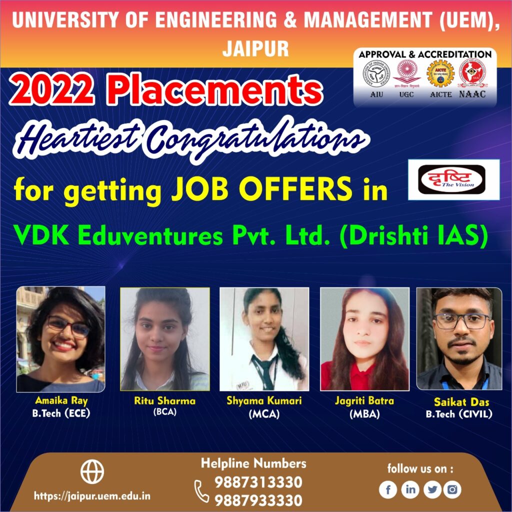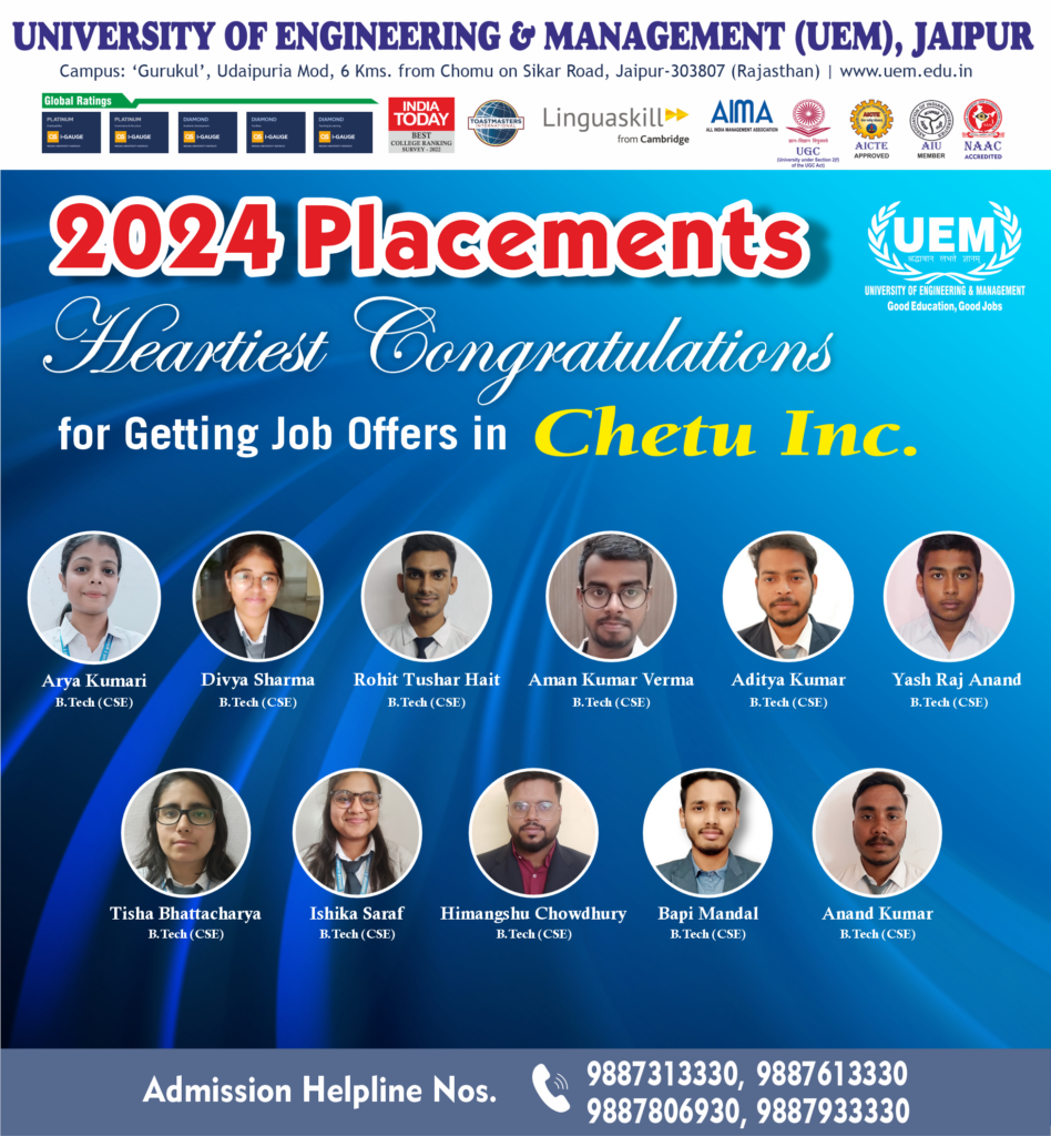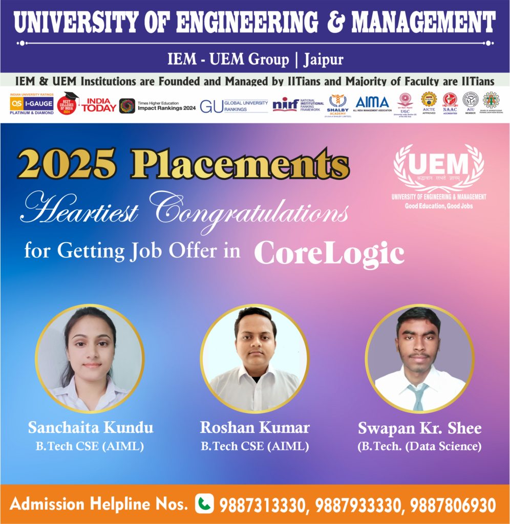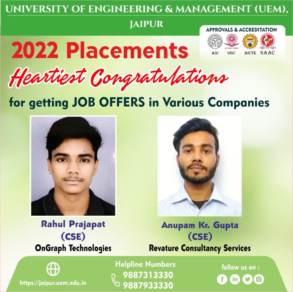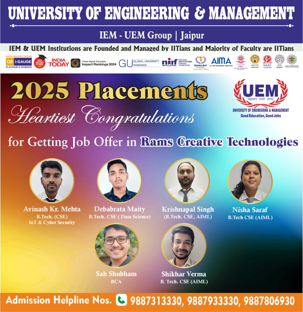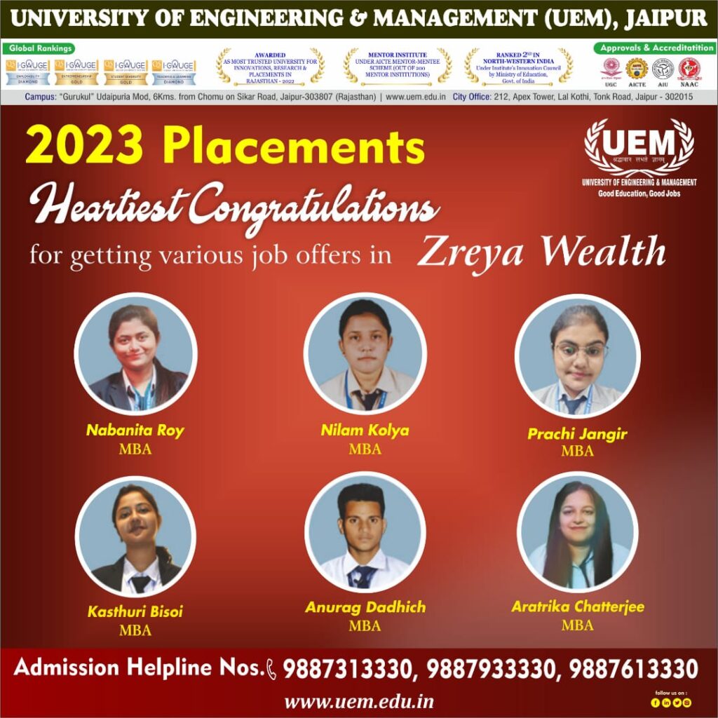 - The students of the University of Engineering & Management (UEM), Jaipur have acquired wonderful job offers.