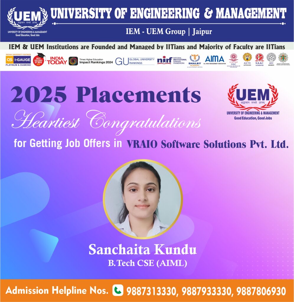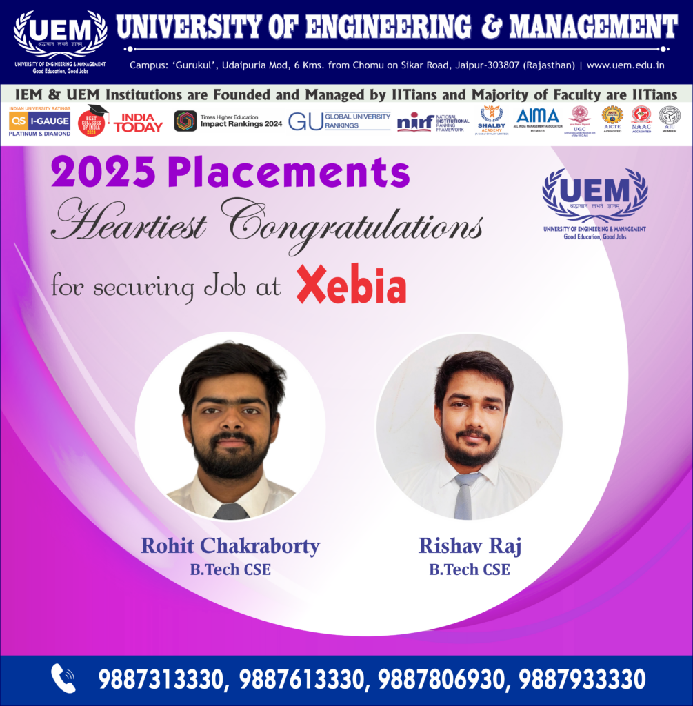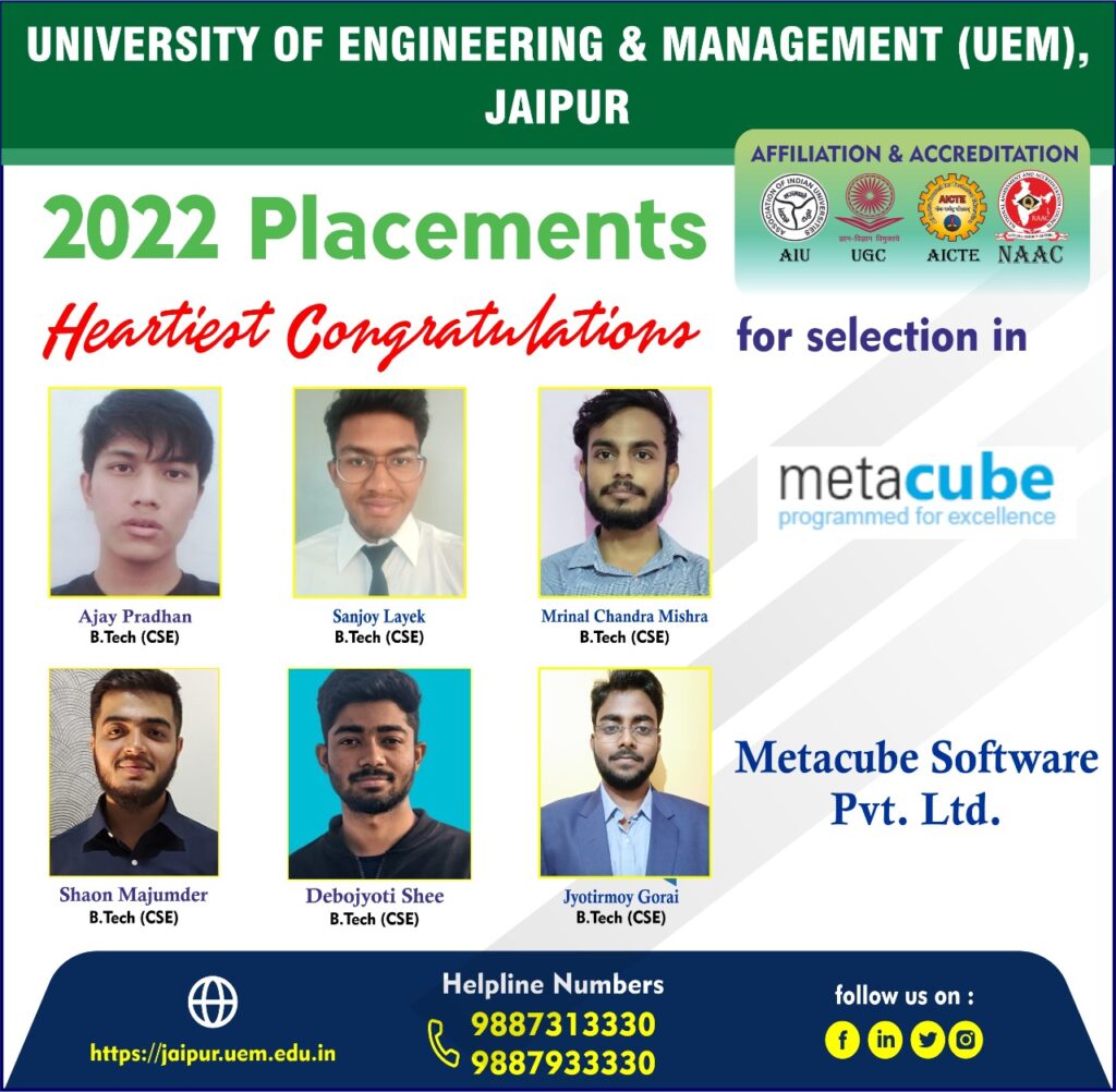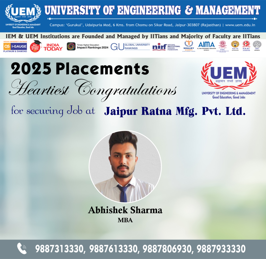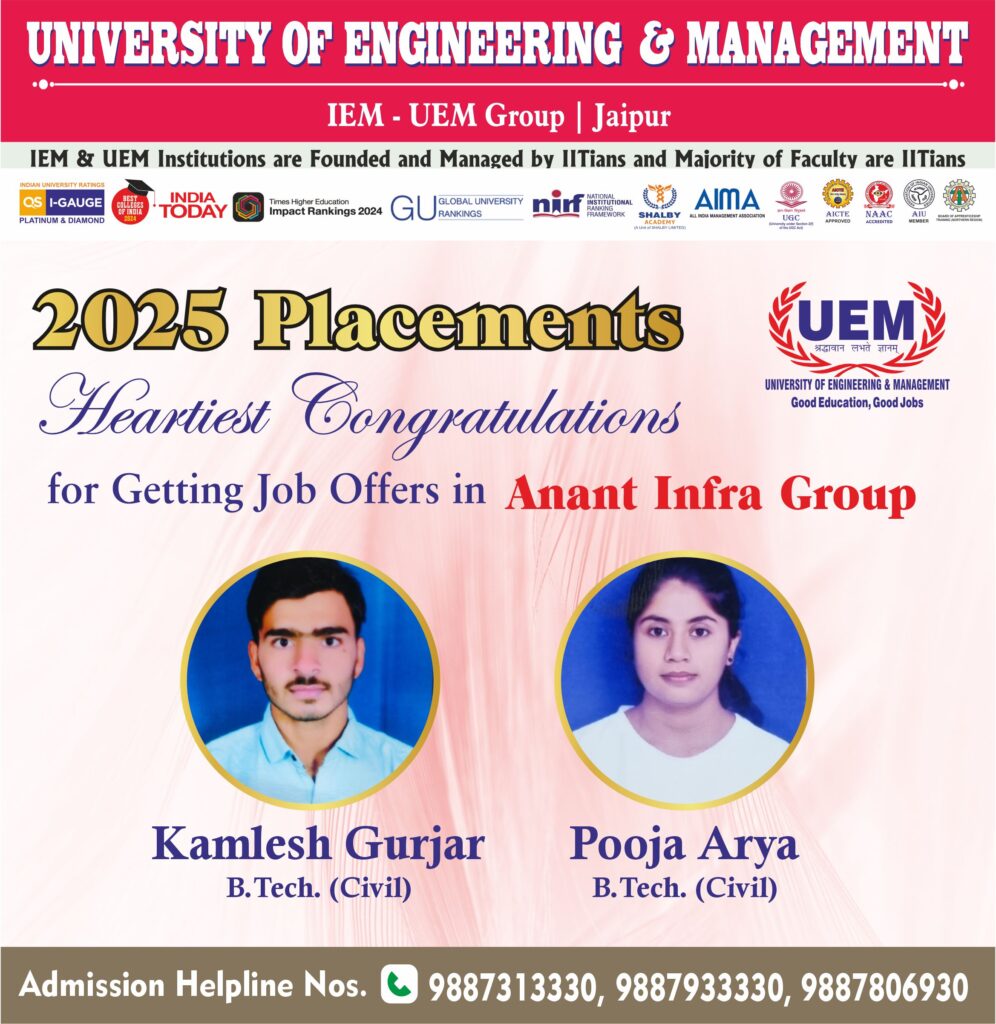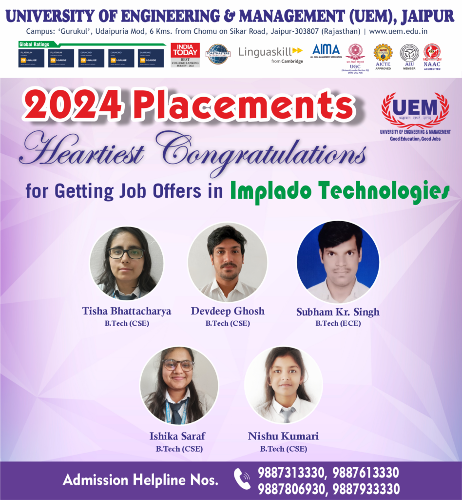 - The students of the University of Engineering & Management (UEM), Jaipur have acquired wonderful job offers.