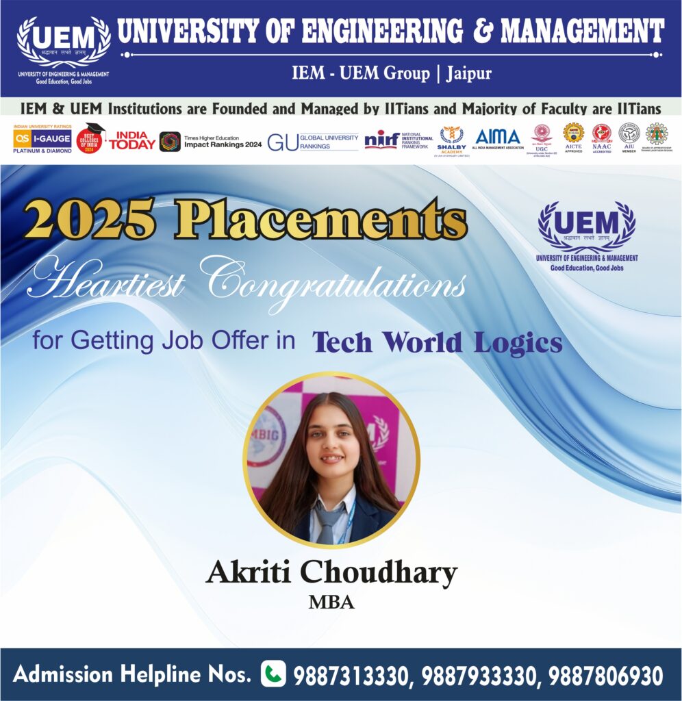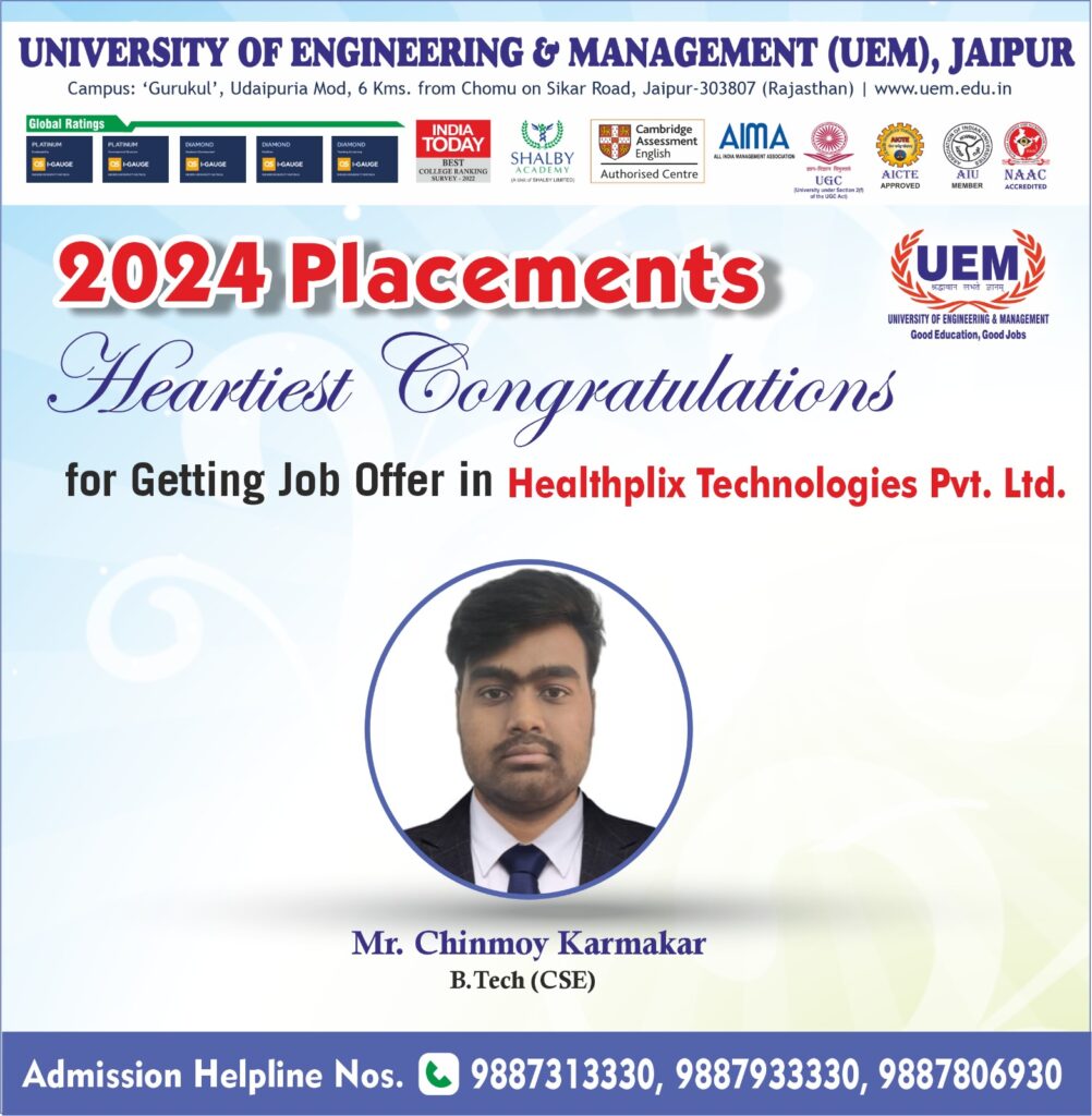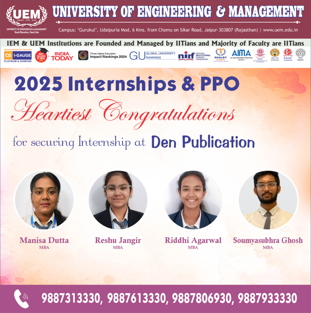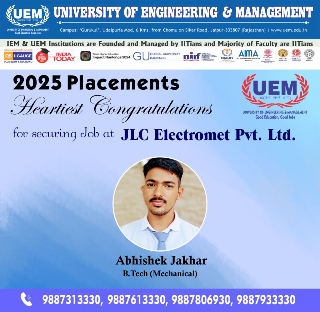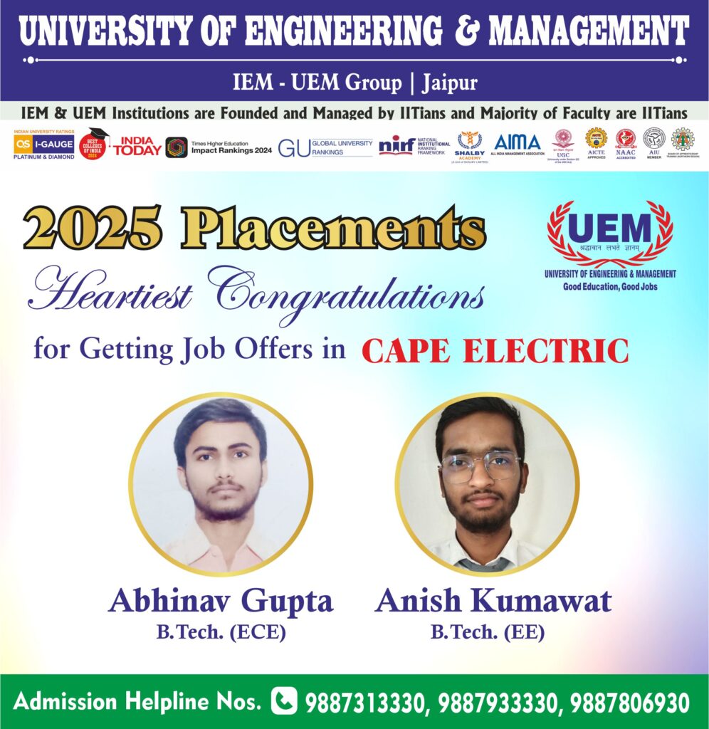 - The students of the University of Engineering & Management (UEM), Jaipur have acquired wonderful job offers.