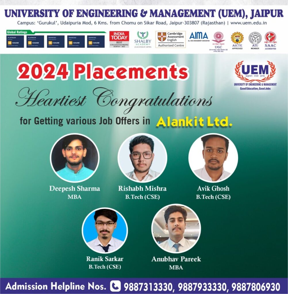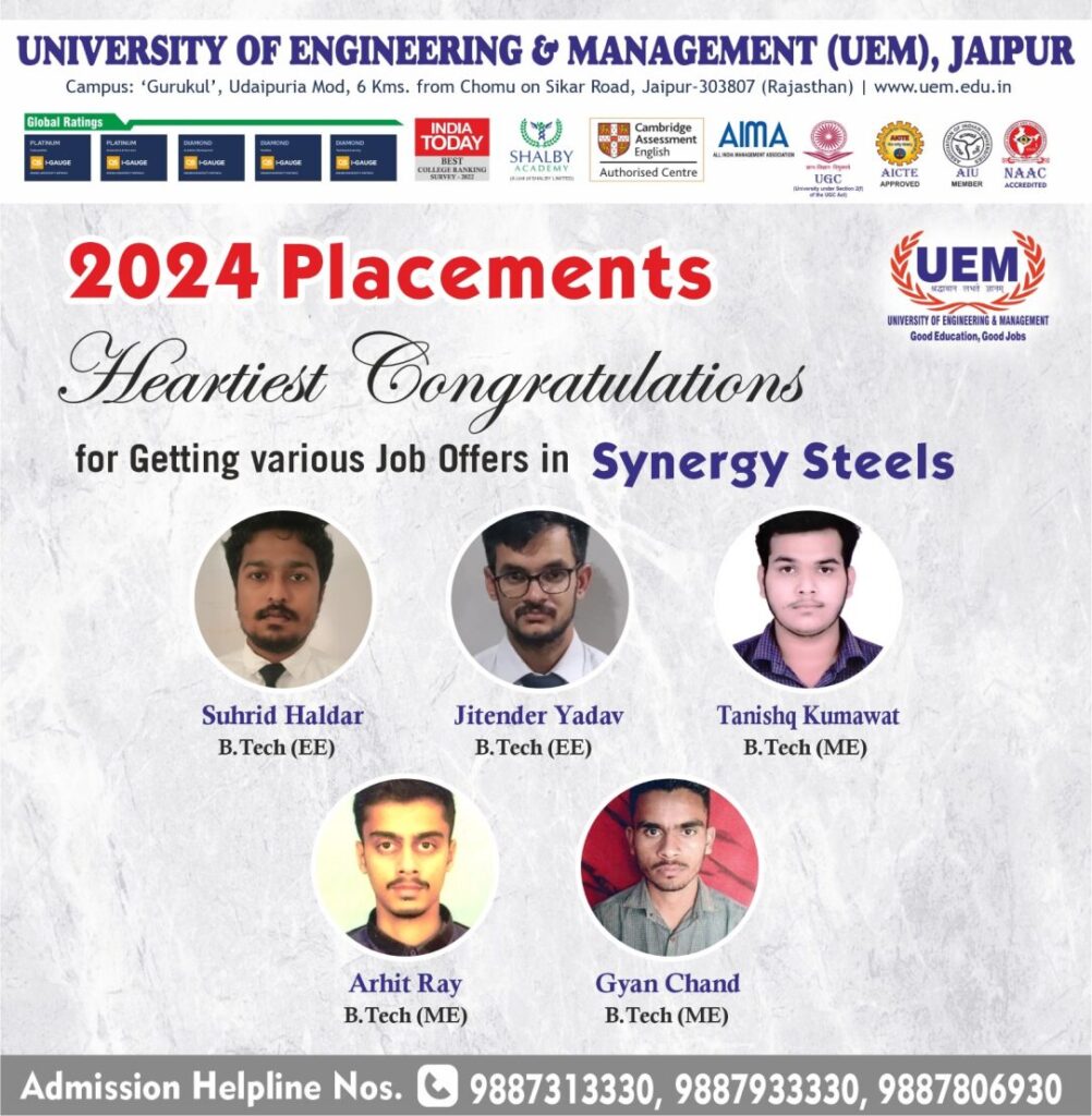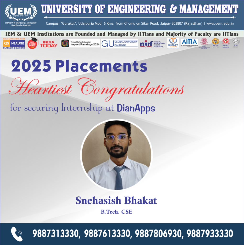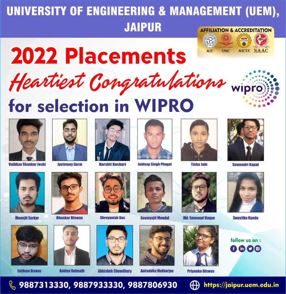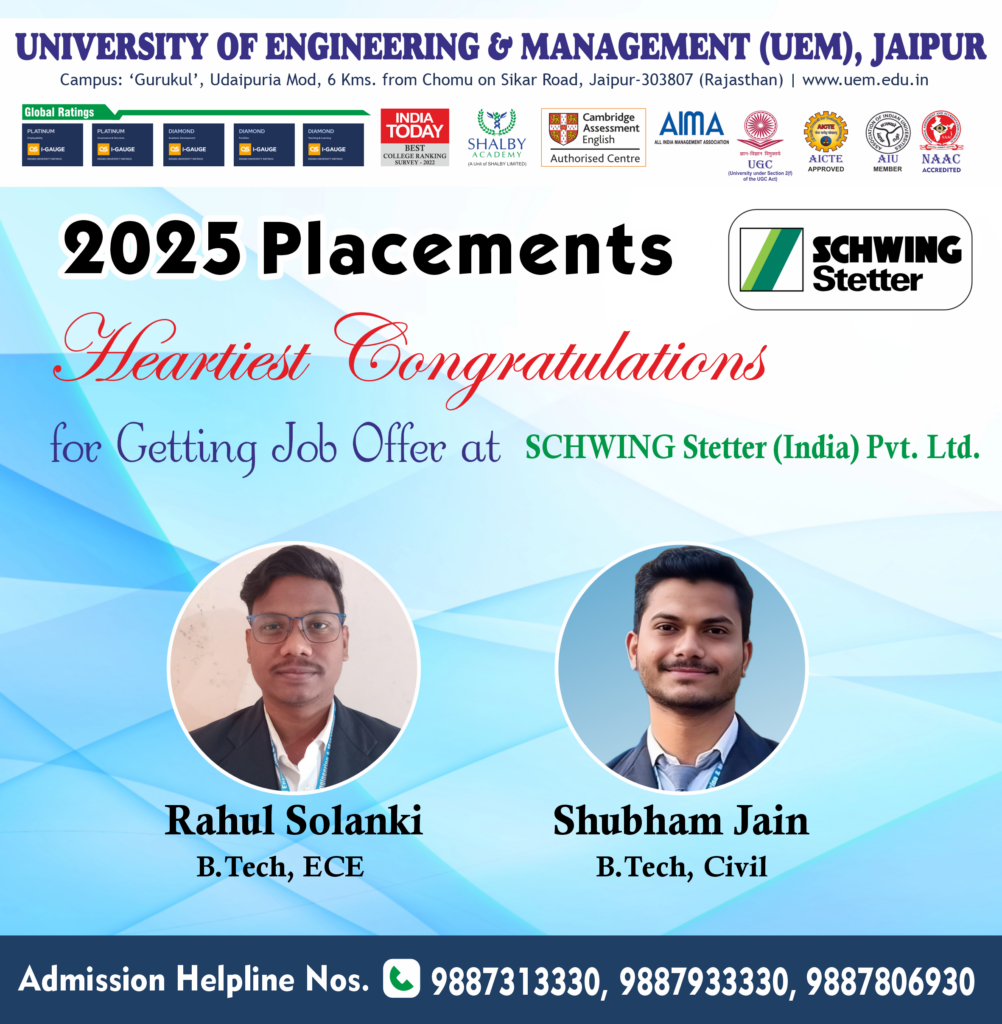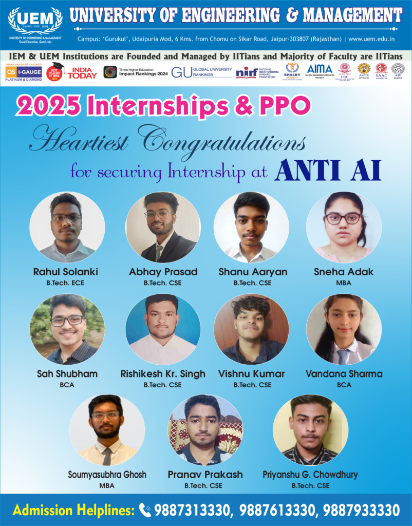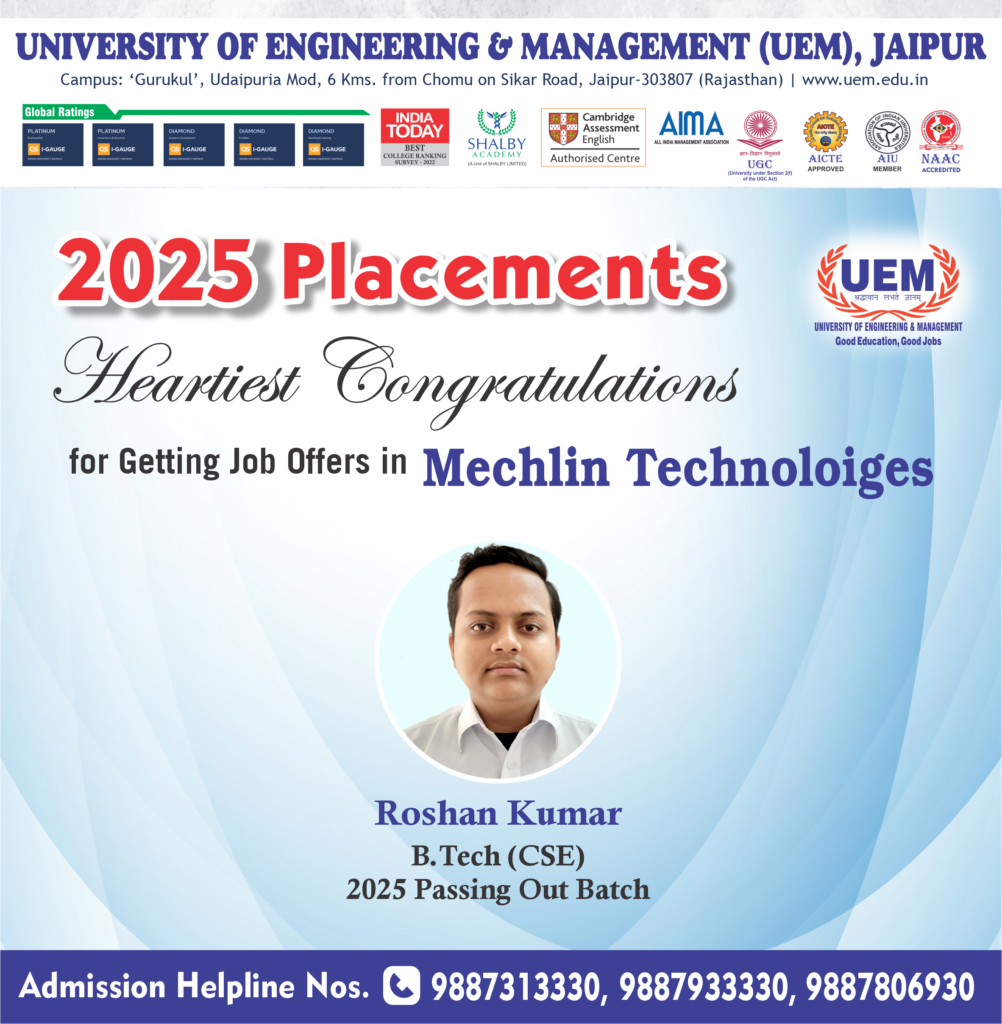- The students of the University of Engineering & Management (UEM), Jaipur have acquired wonderful job offers.