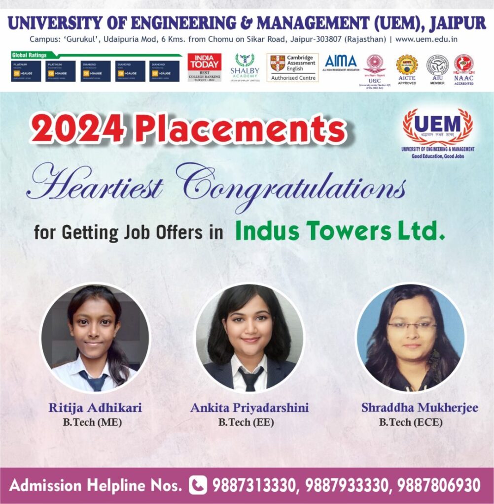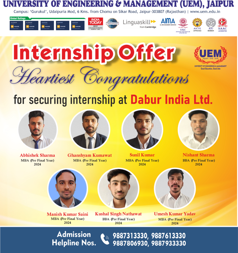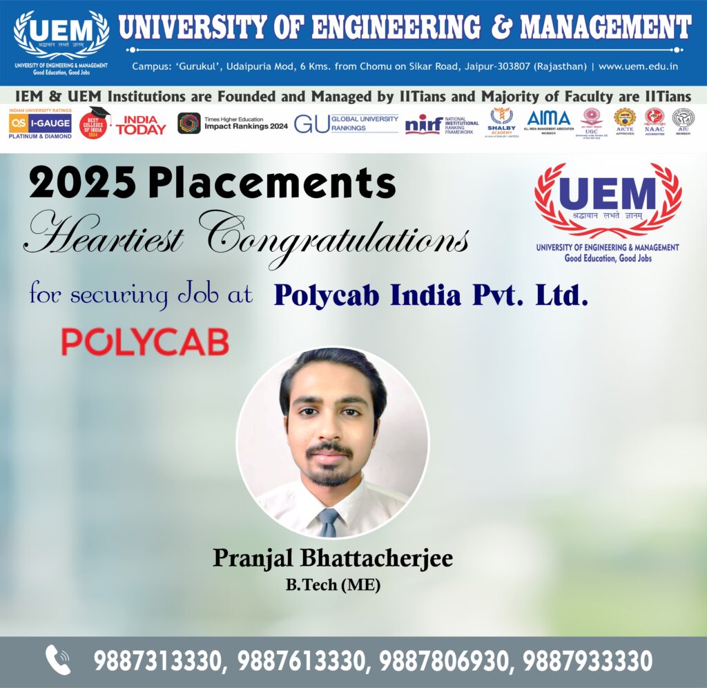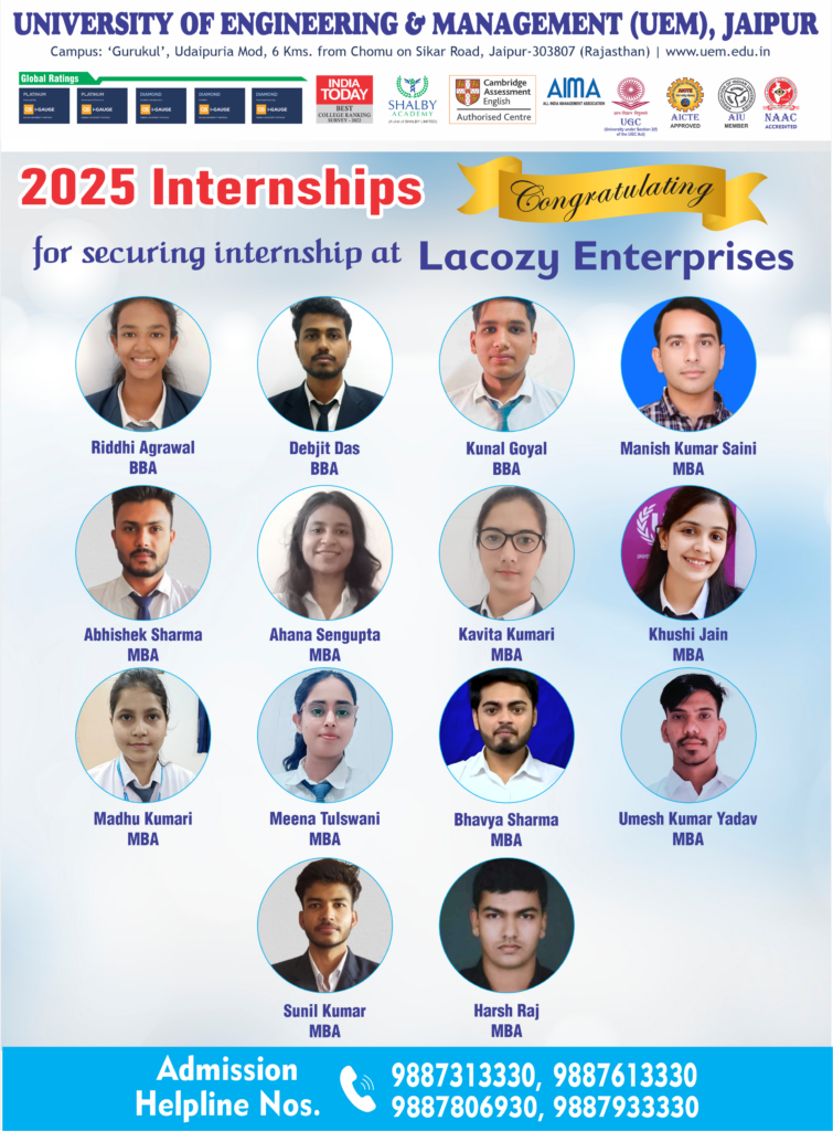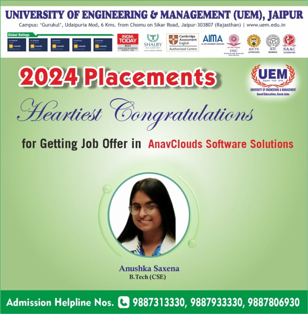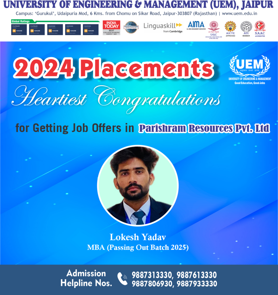- The students of the University of Engineering & Management (UEM), Jaipur have acquired wonderful job offers.