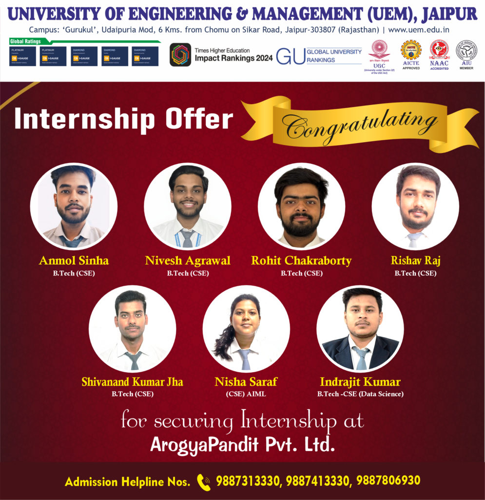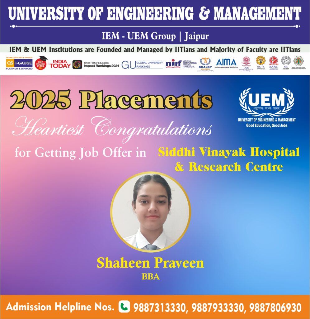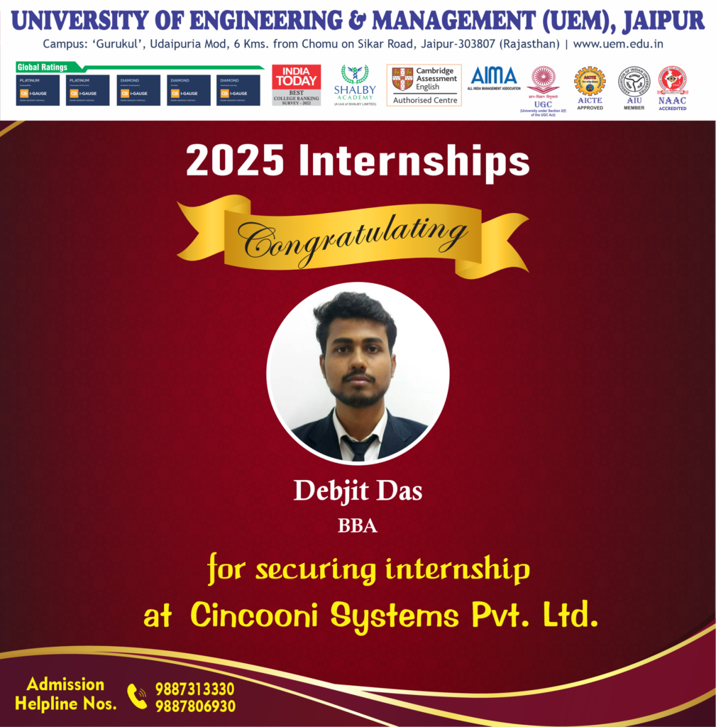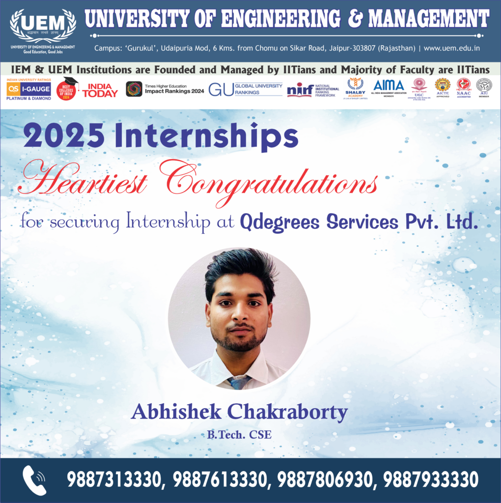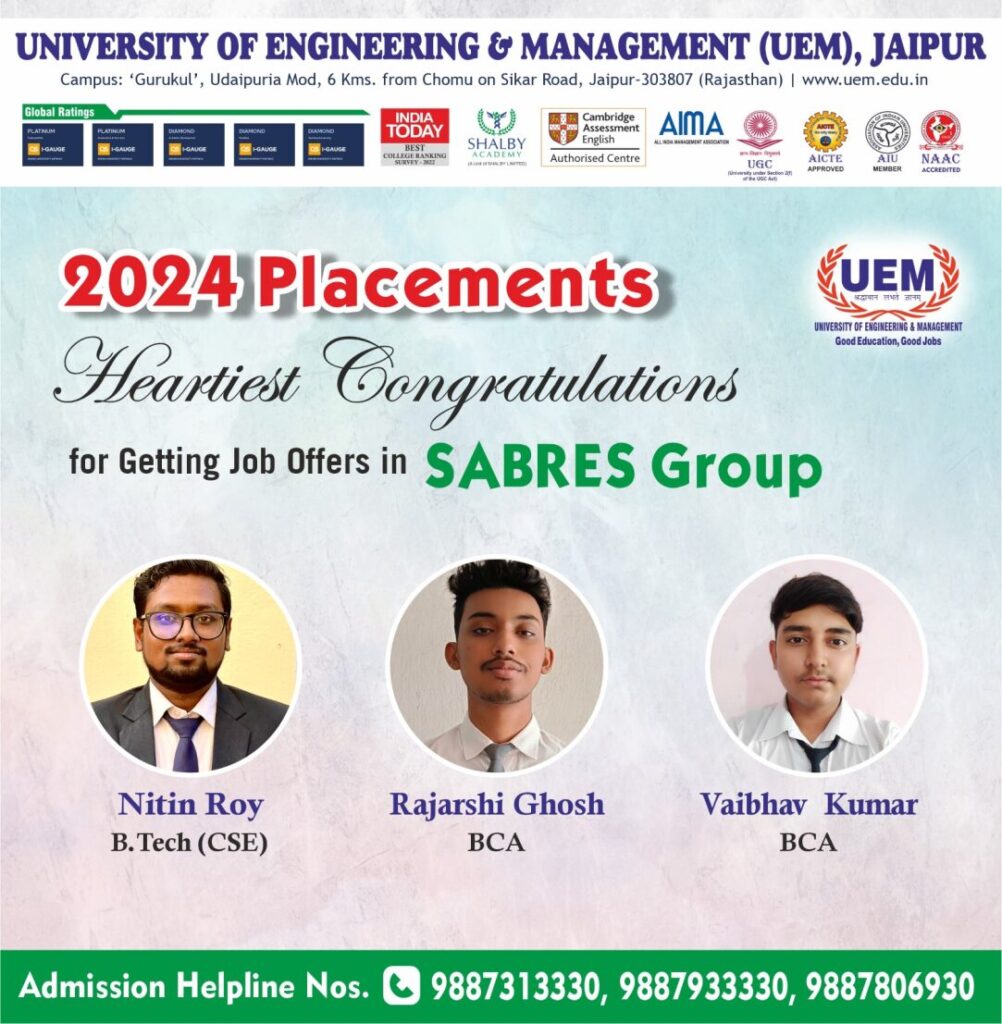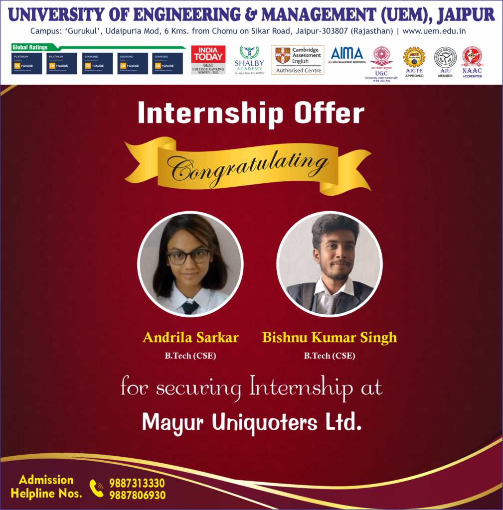 - The students of the University of Engineering & Management (UEM), Jaipur have acquired wonderful job offers.