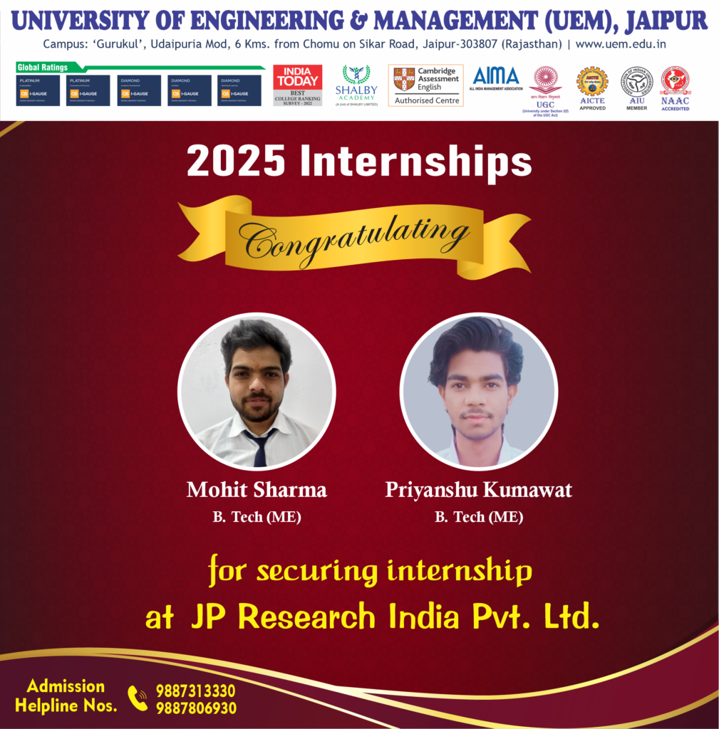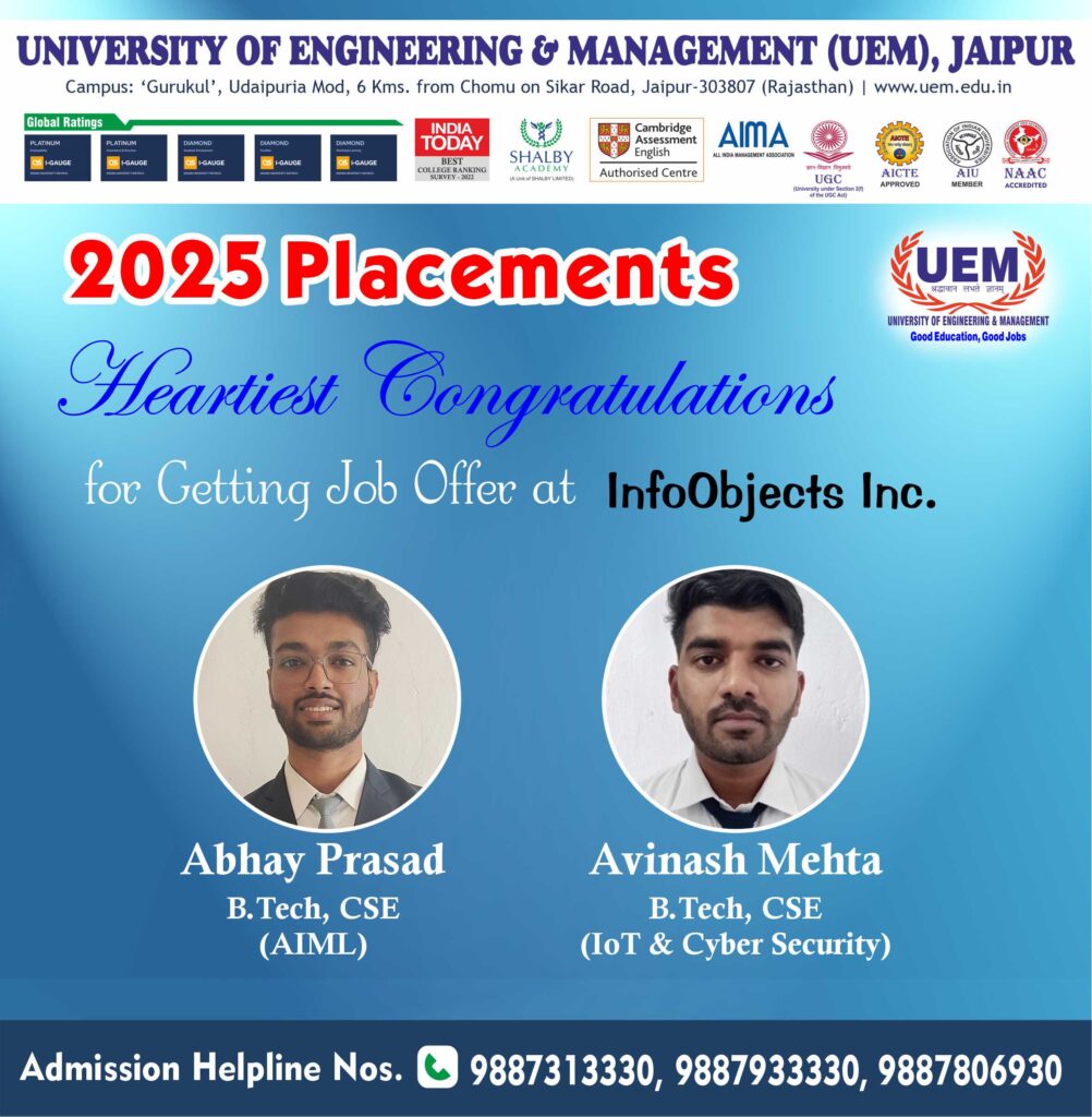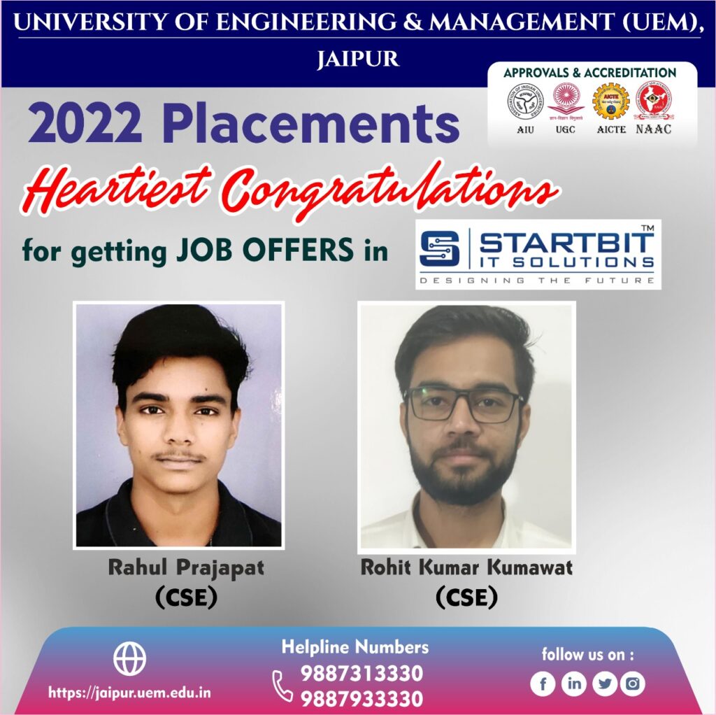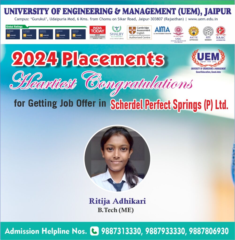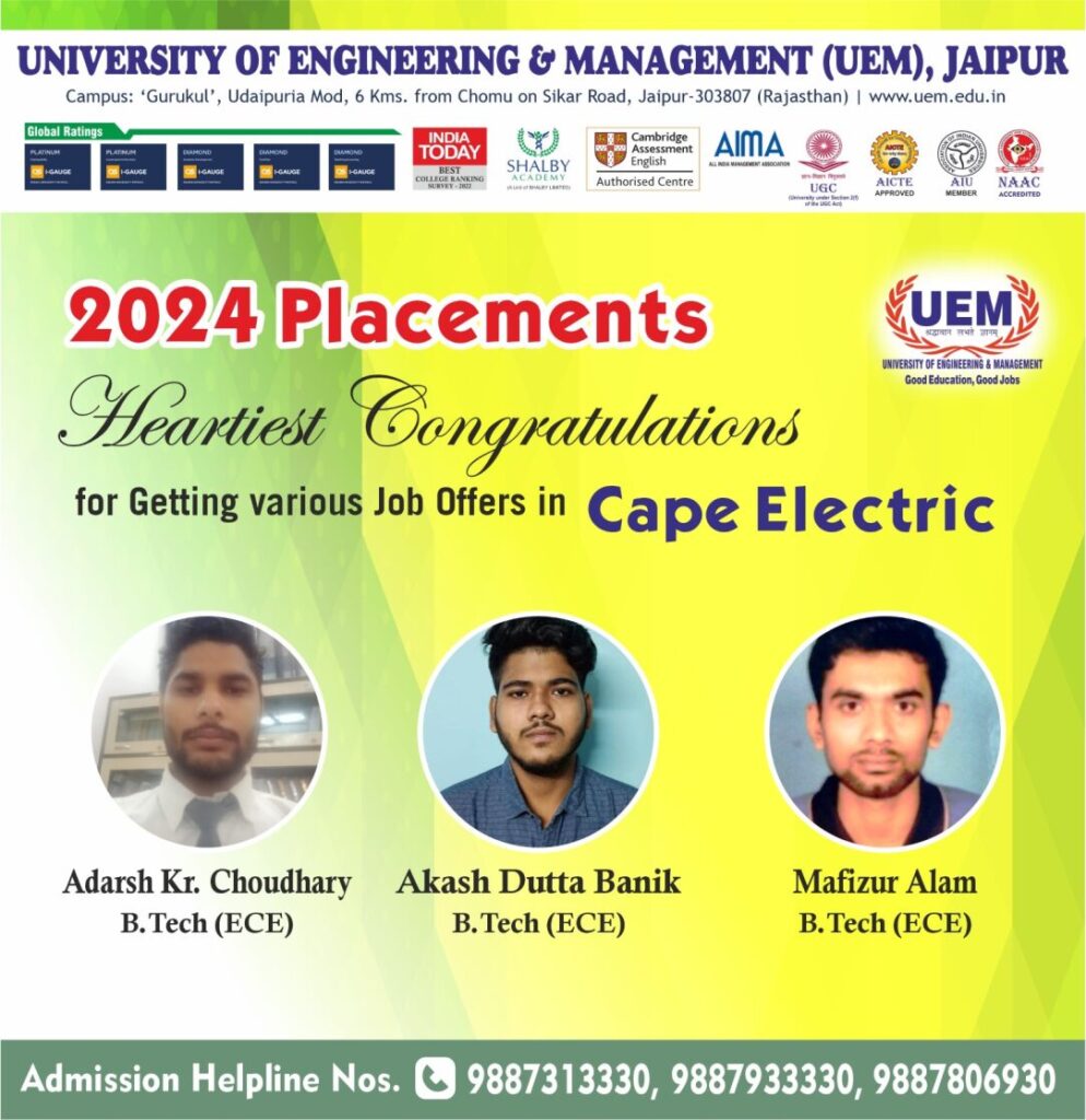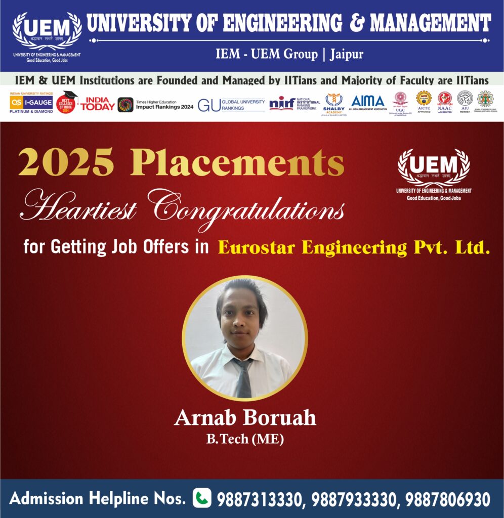- The students of the University of Engineering & Management (UEM), Jaipur have acquired wonderful job offers.