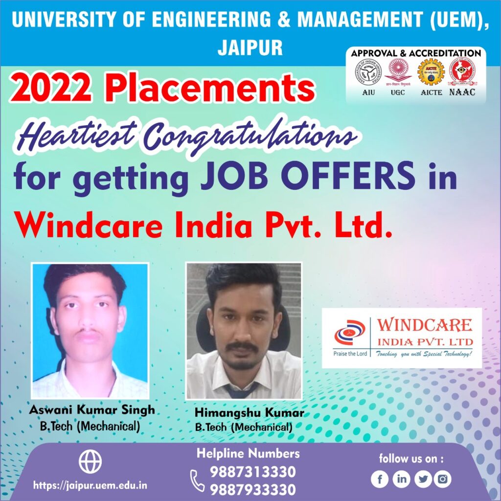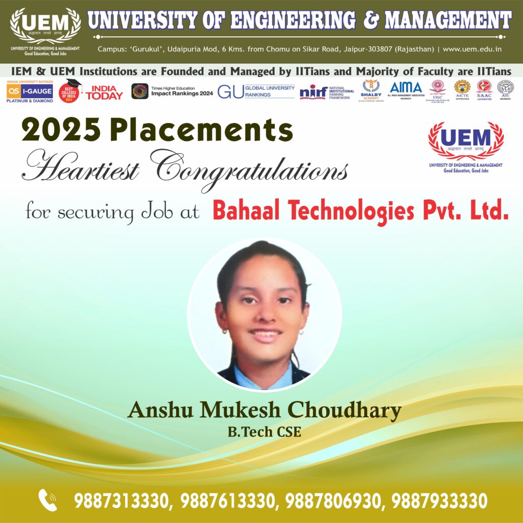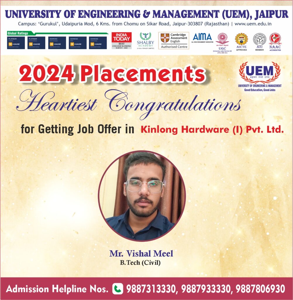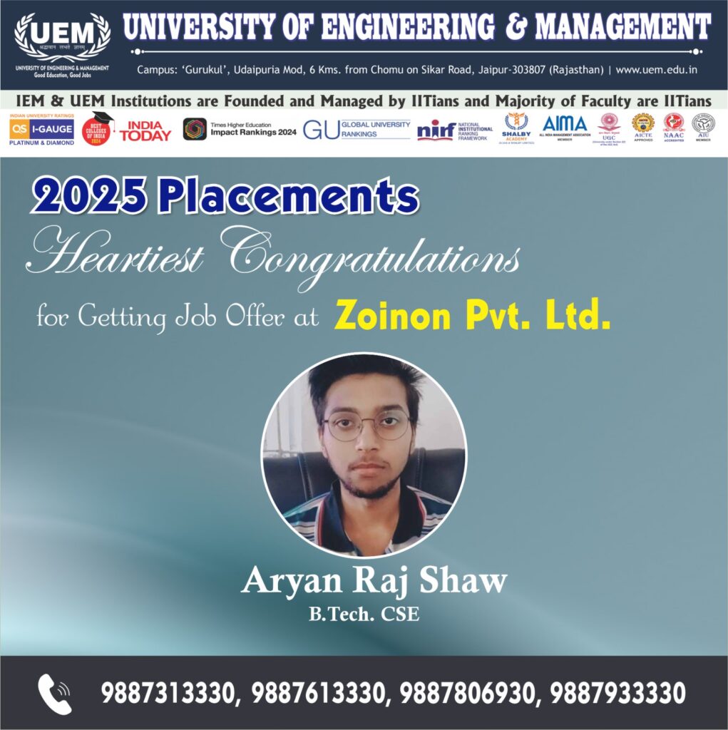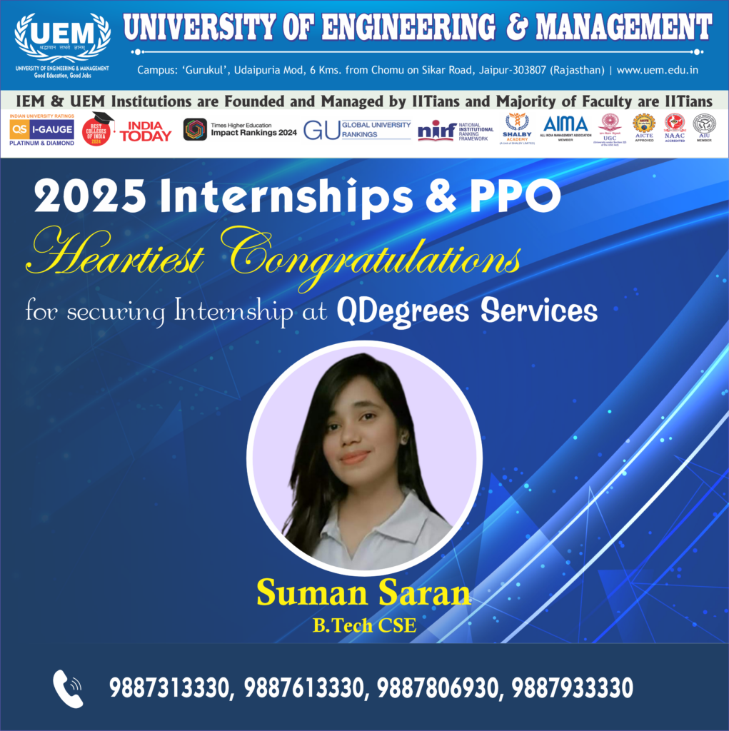 - The students of the University of Engineering & Management (UEM), Jaipur have acquired wonderful job offers.
