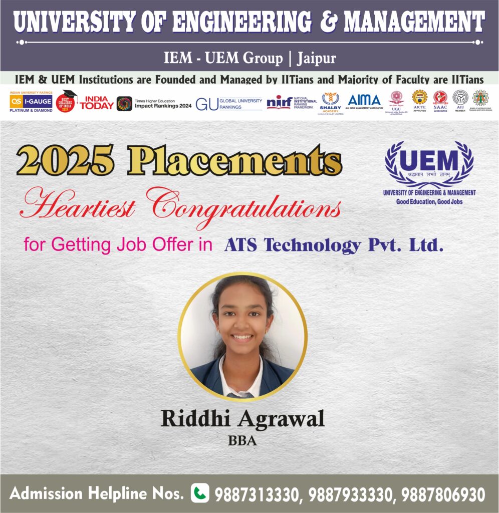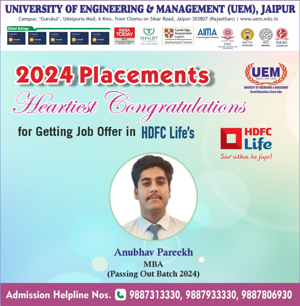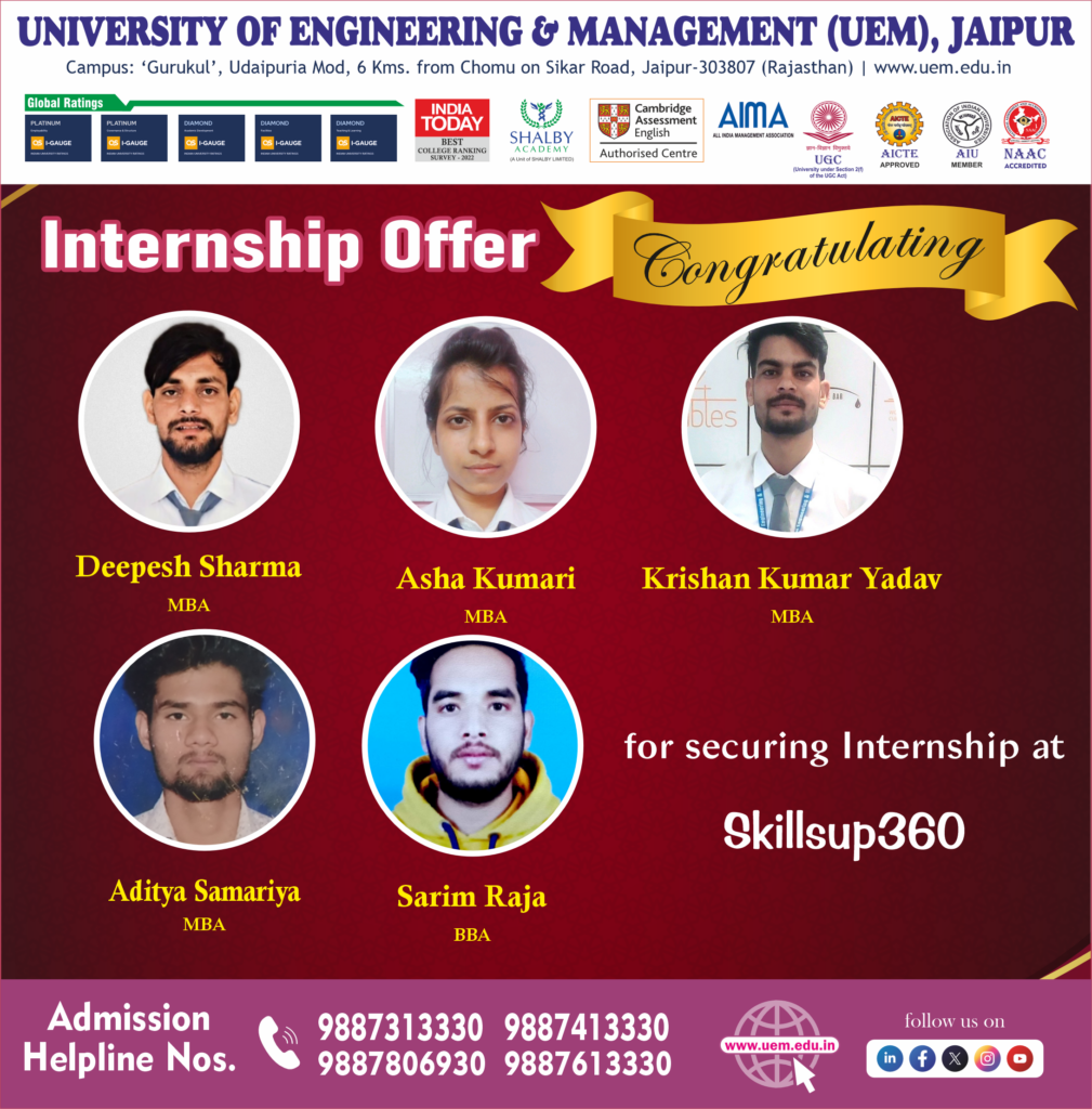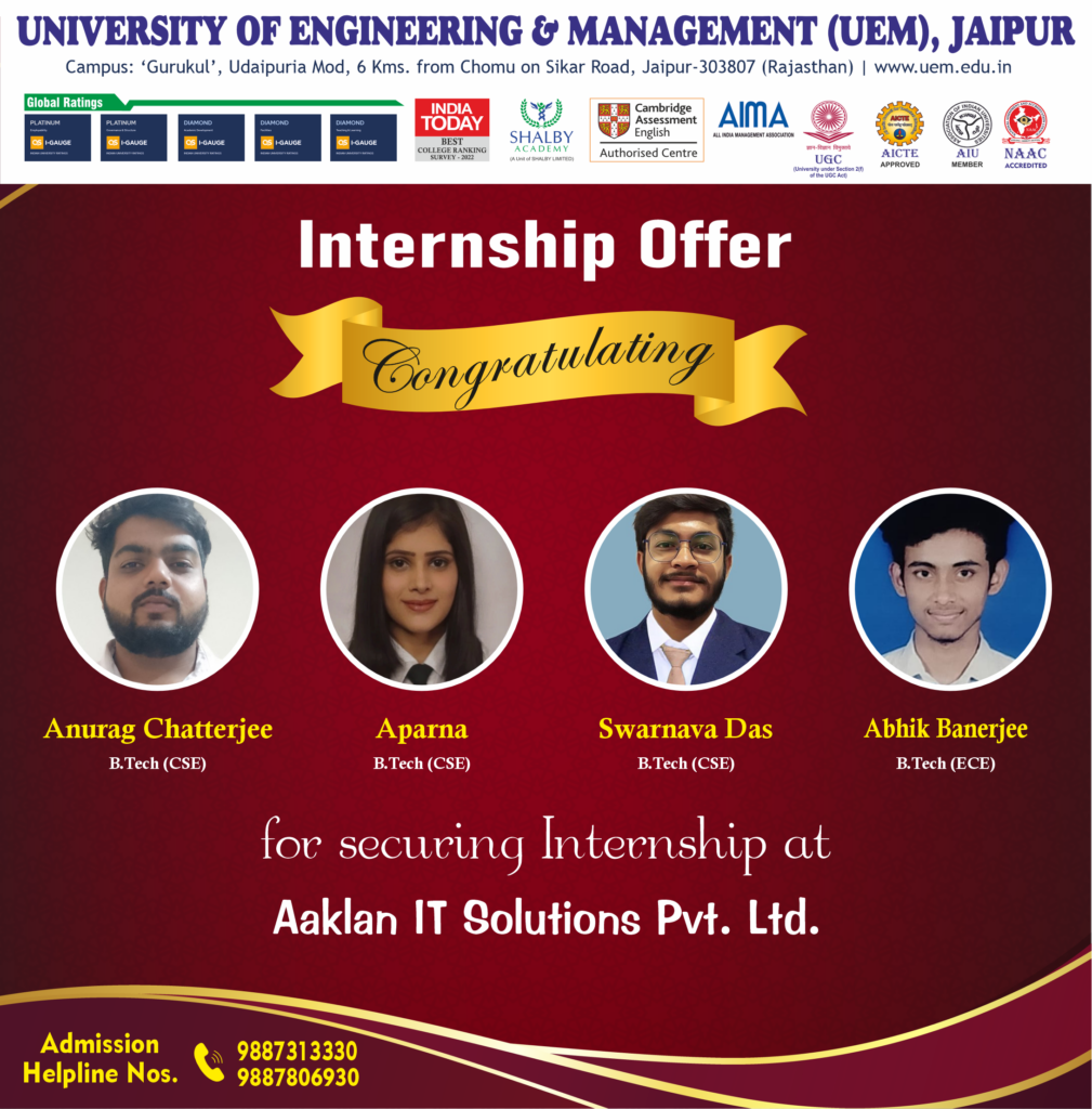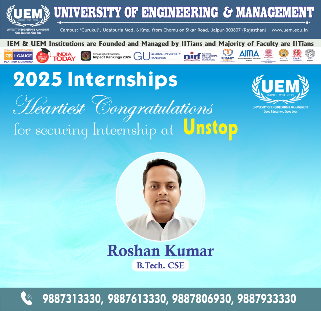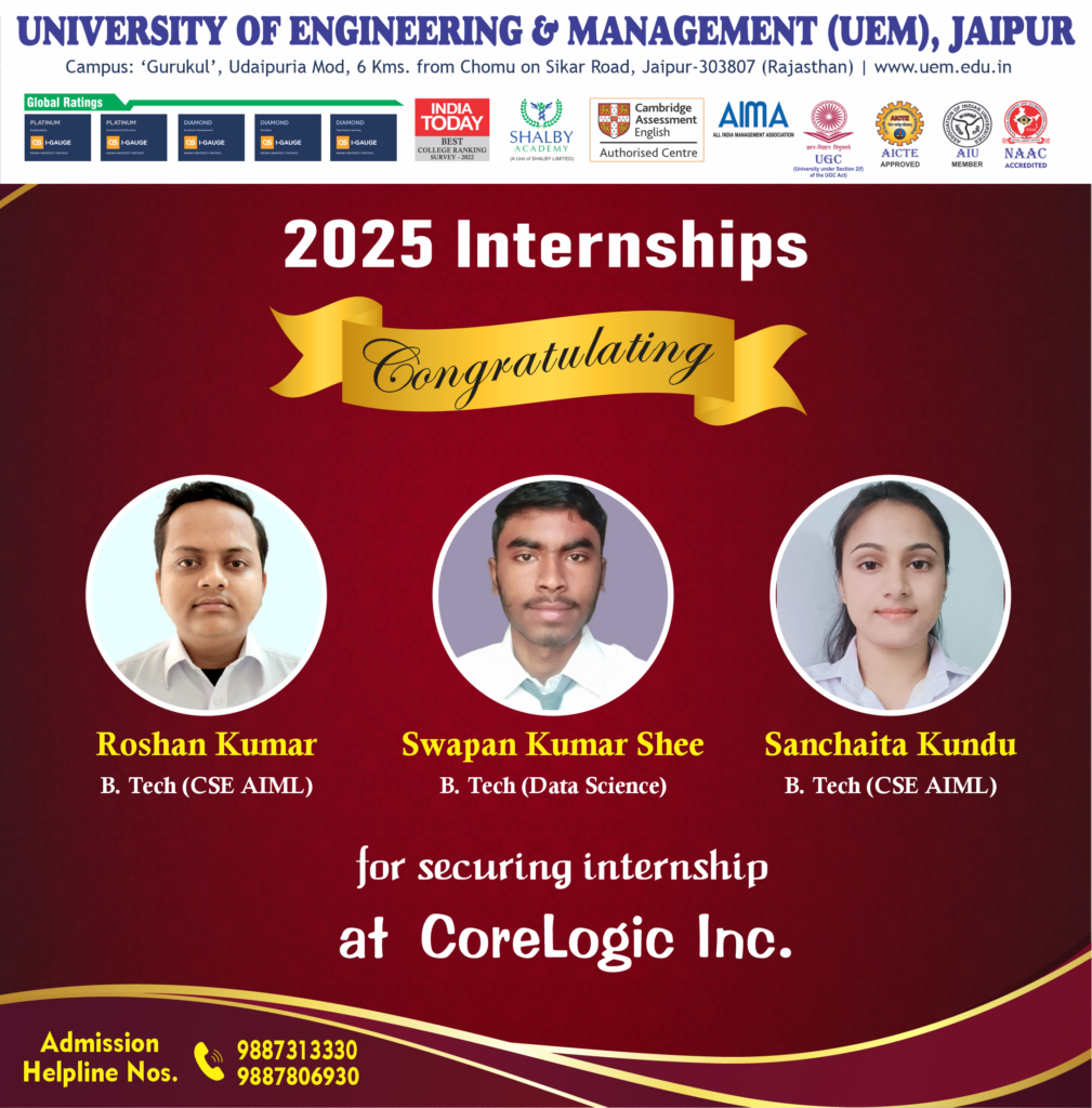 - The students of the University of Engineering & Management (UEM), Jaipur have acquired wonderful job offers.
