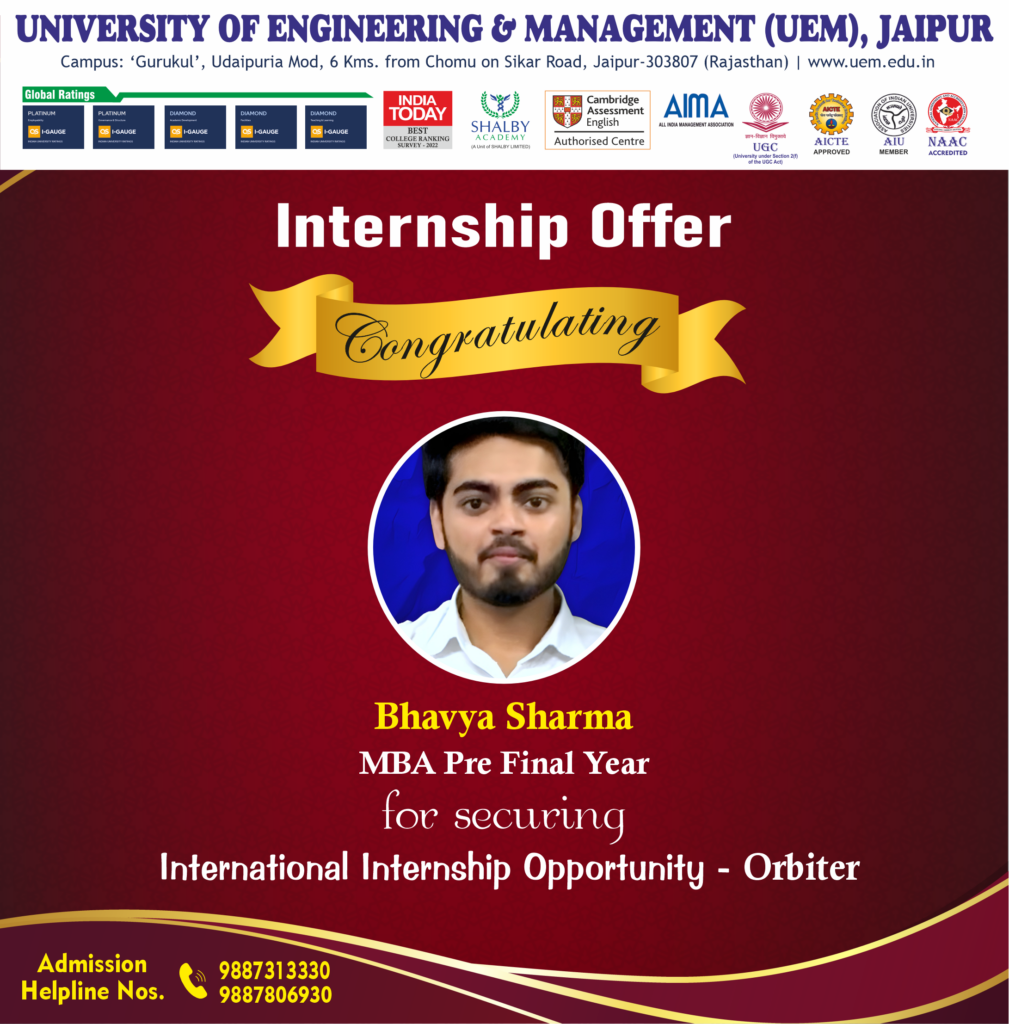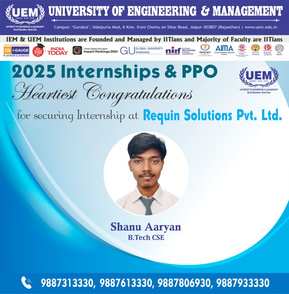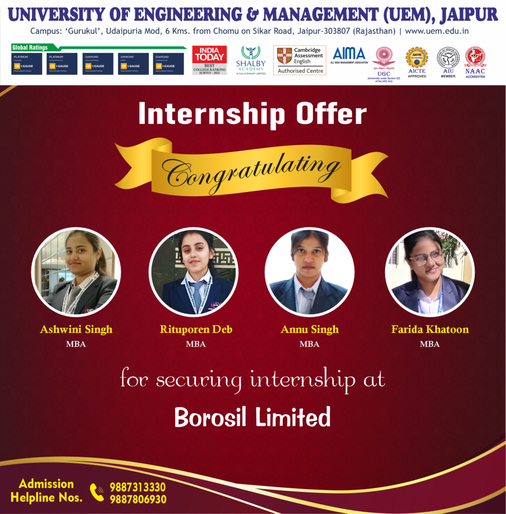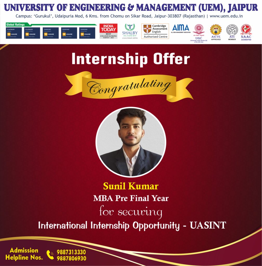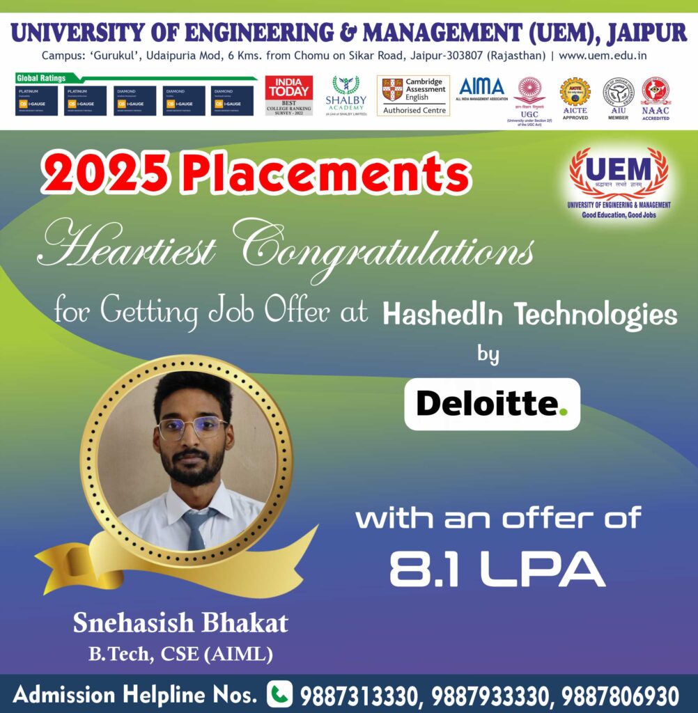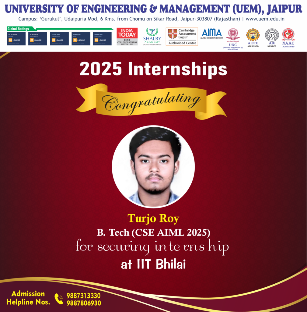 - The students of the University of Engineering & Management (UEM), Jaipur have acquired wonderful job offers.