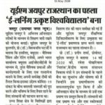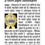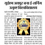 News releases in leading newspapers of Rajasthan regarding University of Engineering & Management (UEM), Jaipur being awarded 1 out of 12 leading institutes of the country (1st in Rajasthan) with the E-Lead Certificate for providing online learning by QS – the most prestigious award on globe.